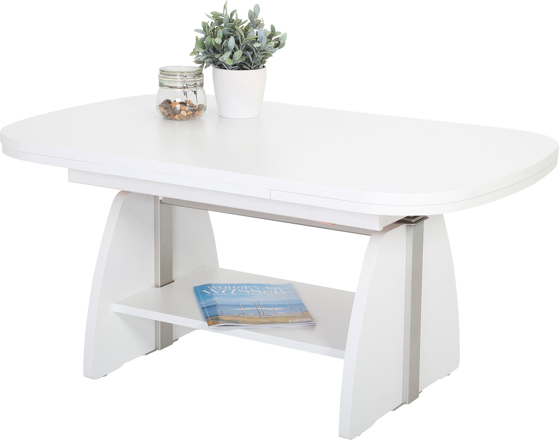 Unser Couchtisch Colin bietet Ihnen besondere Extras. Sie können den in Weiß gehalten Couchtisch sowohl in der Höhe (53-69cm) als auch in der Breite (107-156cm)verändern. Eine Lifttechnik sorgt für eine kinderleichte Höhenverstellung. Die praktische Tischplatte ist mit seitlichen Auszügen versehen. Ein großer Ablageboden bietet Ihnen viel Platz zum Verstauen von diversen Kleinigkeiten.