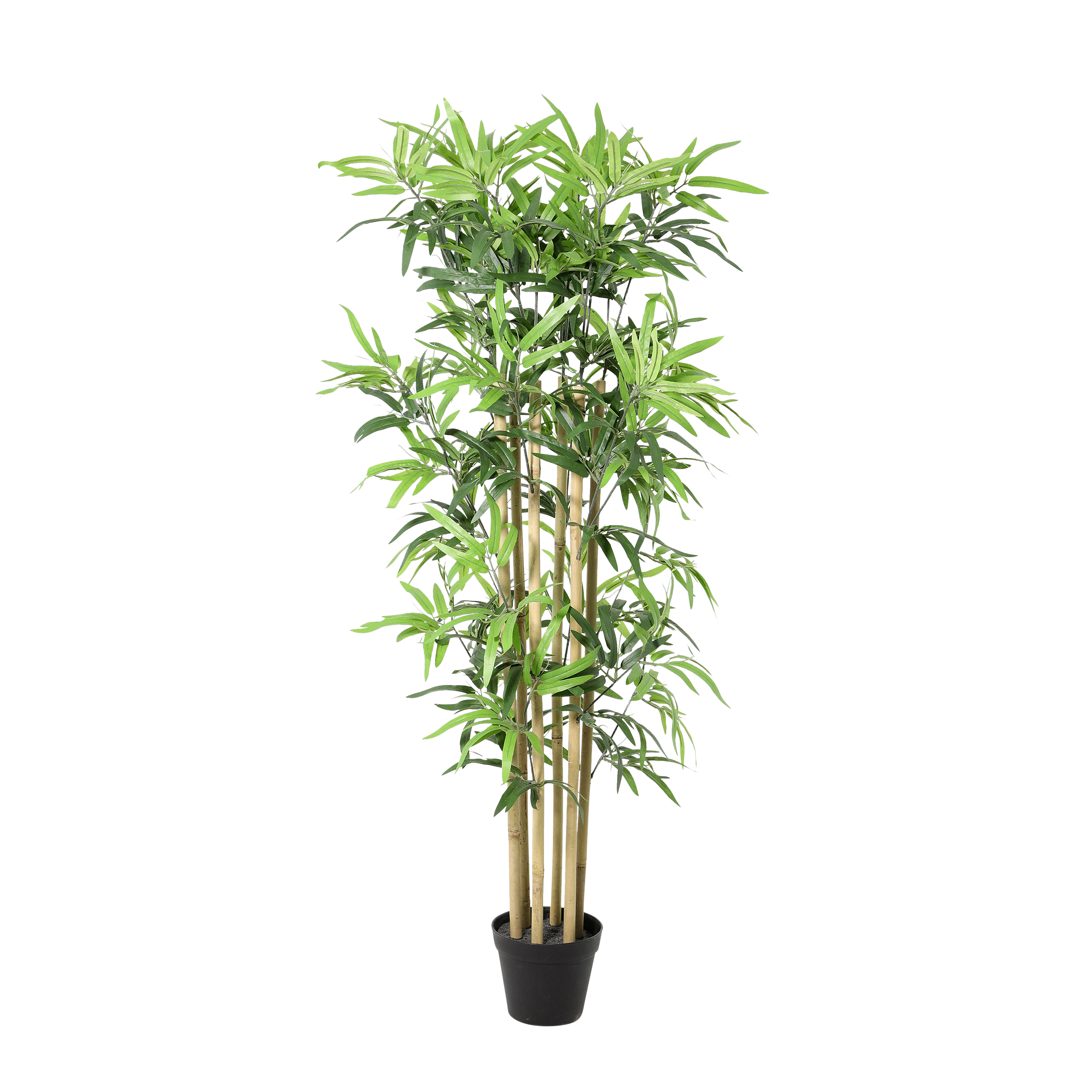 Unser Bambus misst ca. 125 cm in der Höhe und ca. 60 cm im Durchmesser, besteht aus grünem Kunststoff und ist dekorativ im schwarzen Kunststofftopf arrangiert. Er bringt sofort natürliche, tropische Akzente in jeden Raum und sorgt ganz ohne Pflegeaufwand das ganze Jahr über für ein lebendiges, stilvolle Ambiente.