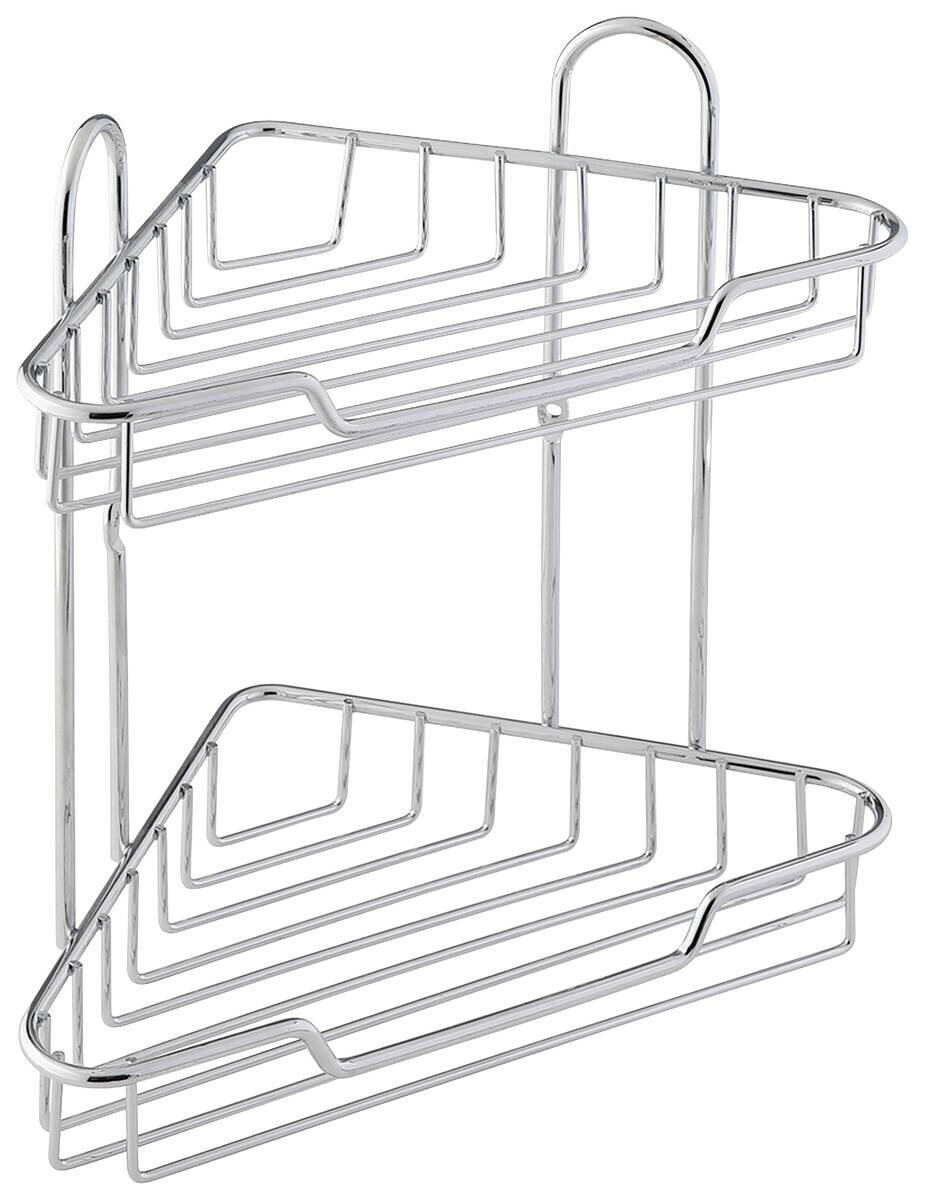 Kompaktes Eckregal mit zwei verchromten Böden für mehr Stauraum in Bad oder Dusche. Mit den Maßen von ca. 19 x 19 x 25 cm passt es perfekt in jede Ecke und sorgt für Ordnung und Übersichtlichkeit.
