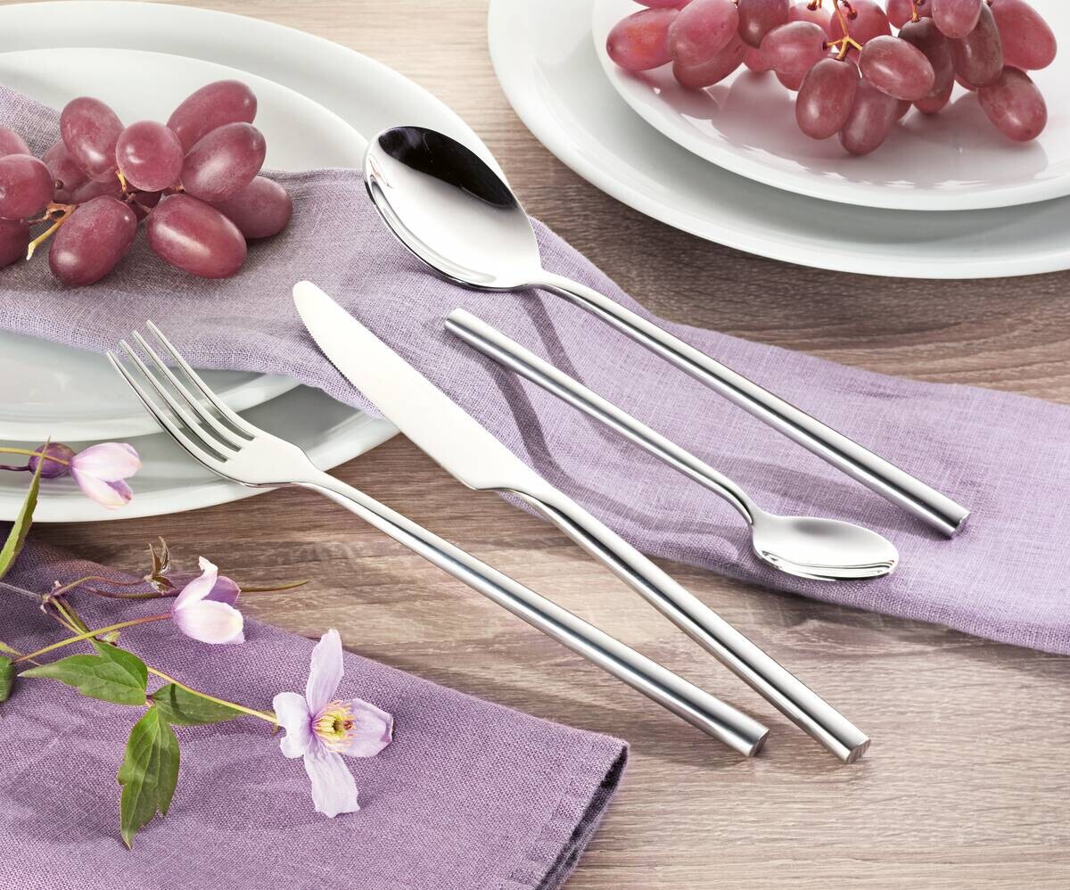 Das Esmeyer Besteckset "Silke" in Silber umfasst 24 Teile aus hochwertigem Edelstahl. Es beinhaltet je sechs Messer, Gabeln, Löffel und Teelöffel, ideal für einen Haushalt mit vier Personen. Das Besteck zeichnet sich durch seine elegante und zeitlose Optik aus, die zu jeder Tischdekoration passt. Der Edelstahl sorgt für Langlebigkeit und Widerstandsfähigkeit gegen Rost und Korrosion. Zudem ist das Set pflegeleicht und spülmaschinengeeignet, was den Alltag erleichtert. Mit dem Esmeyer Besteckset "Silke" erhältst du eine stilvolle und praktische Ergänzung für deine Küche, perfekt für den täglichen Gebrauch sowie besondere Anlässe.