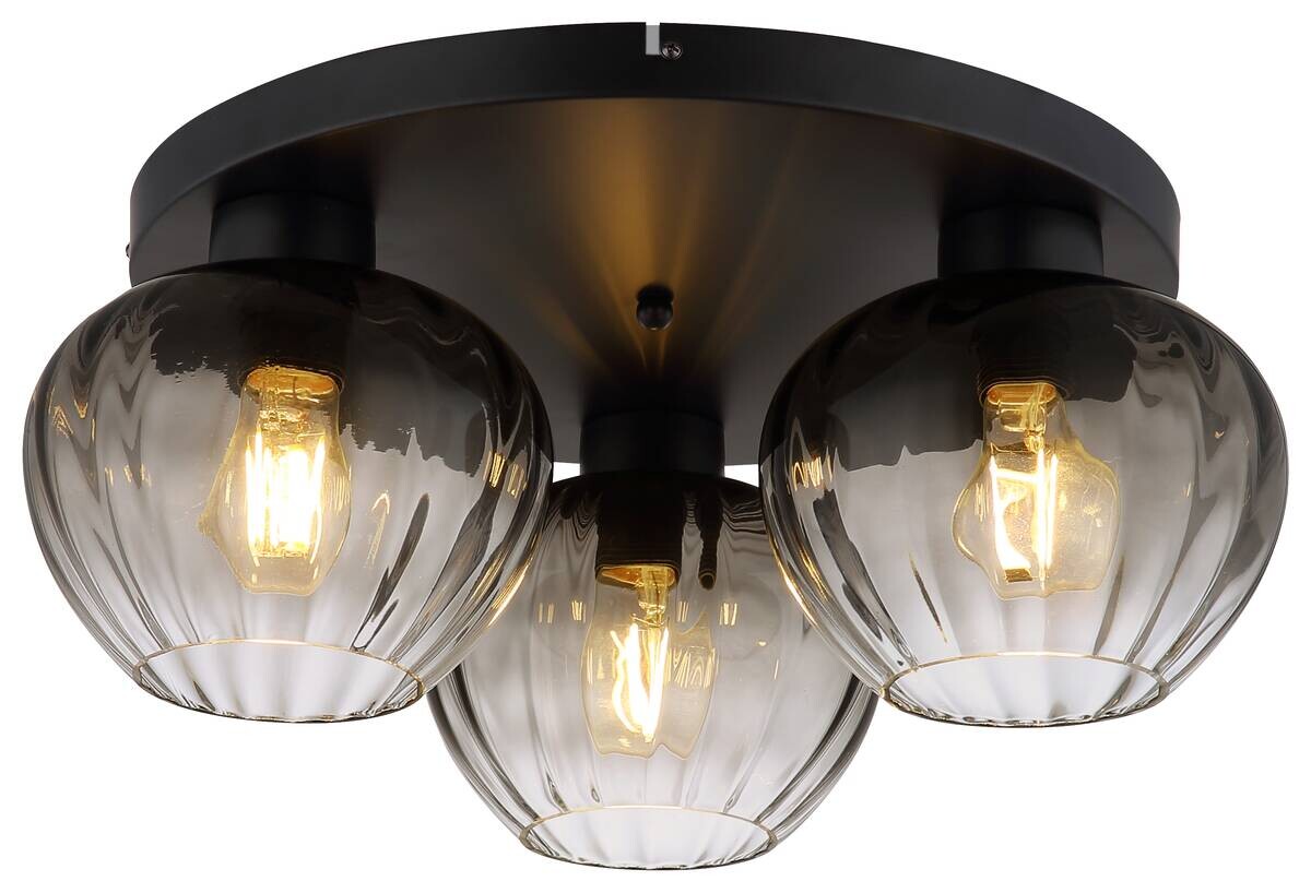 GLOBO Deckenleuchte TOY 60130308 Rauch schwarz Metall Glas H/D: ca. 20,5x45 cm E27 3 Brennstellen
