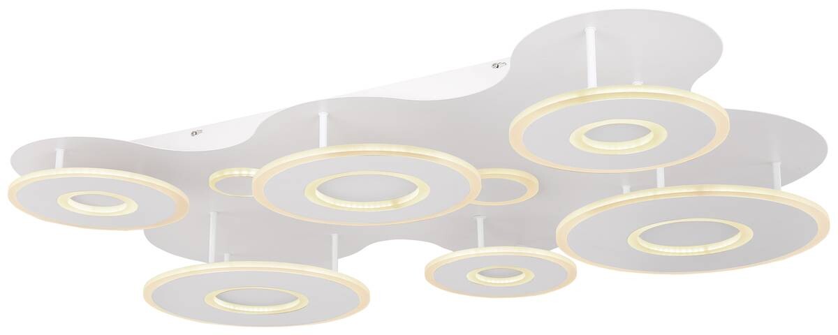 Deckenleuchte Metall weiß, Acryl opal, weiß, dimmbar, mehrere Stufen über Wandschalter, Farben fixierbar, Memoryfunktion, Nachtlicht, Fernbedienung, Batterie inkludiert 2x AAA, LxBxH: 1070x800x150mm, inkl. LED 100W 230V, 380-9500lm Source, 320-6500lm Output, CCT 3000-6000KDie LED - Lichtquelle ist nicht austauschbar.Das Betriebsgerät kann durch einen Fachmann ausgetauscht werden.