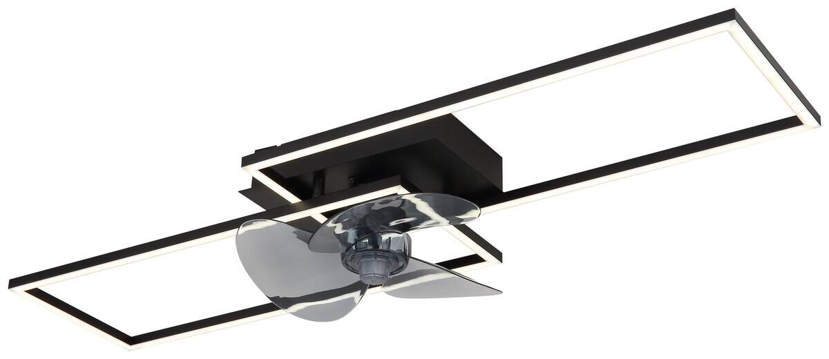 Entdecken Sie die innovative Deckenventilator-TATJANA, die Ihre Räume mit einer einzigartigen Kombination aus Beleuchtung und Ventilation ausstattet. Die TATJANA besteht aus einem rechteckigen Korpus aus schwarzem, matt lackiertem Metall, an dem zwei weitere Rechtecke nebeneinander angebracht sind. Der Ventilator mittig auf dem Korpus sorgt für eine angenehme Luftbewegung. Die TATJANA ist ein multifunktionales Gerät, das nicht nur beleuchtet, sondern auch ventilieren kann. Die Beleuchtung ist dimmbar und kann in verschiedenen Farben festgelegt werden, dank Memoryfunktion. Der Nachtlichtmodus sorgt für eine sanfte Beleuchtung in der Nacht. Die Ausgabe von 1500 Lumen sorgt für eine ausreichende Helligkeit. Die Farbtemperatur von 3000K bis 6000K kann gewählt werden, um die richtige Stimmung zu schaffen. Die TATJANA ist ideal für Räume, die eine einzigartige Atmosphäre und ein besonderes Licht benötigen.