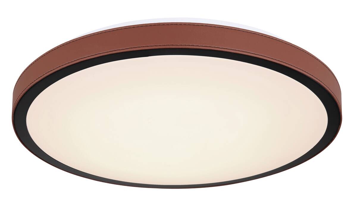 Diese runde Deckenleuchte begeistert durch Ihre wundervolle Farbgebung. Der opalene Kunststoff, welcher die inkludierten LED-Leuchtmittel bedeckt, wird von dem runden Außengehäuse aus stilvoll dunkelbraunen Metall (Ø42cm) umschlossen. Mit den LED-Leuchtmittel leistet die Deckenleuchte ein 1189 Lumen starkes Licht bei einer Lichtfarbe von 3000 Kelvin warmweiß, 4500 Kelvin neutral und 6000 Kelvin kaltweiß.