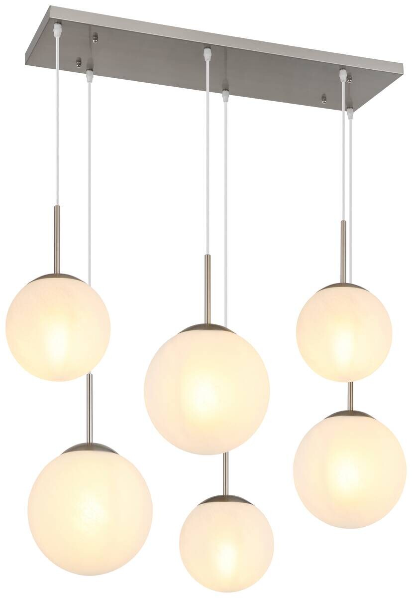 GLOBO Pendelleuchte KOP 30520601 klar Opal nickel Metall Glas B/H/L: ca. 93,5x120x43 cm E27 6 Brennstellen