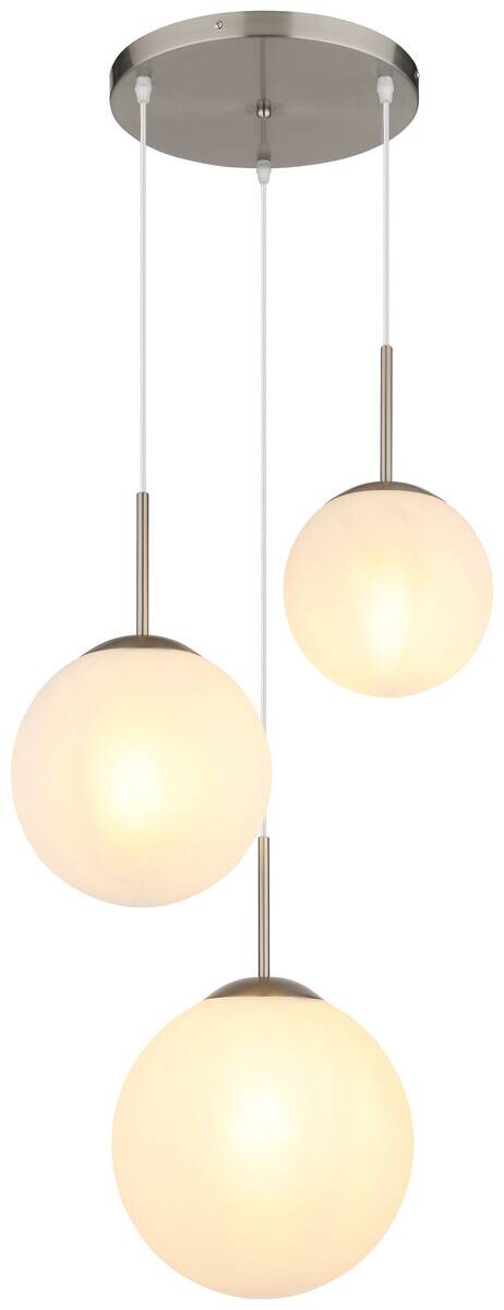 GLOBO Pendelleuchte KOP 30529301 nickel Opal klar Metall Glas H/D: ca. 120x50 cm E27 3 Brennstellen