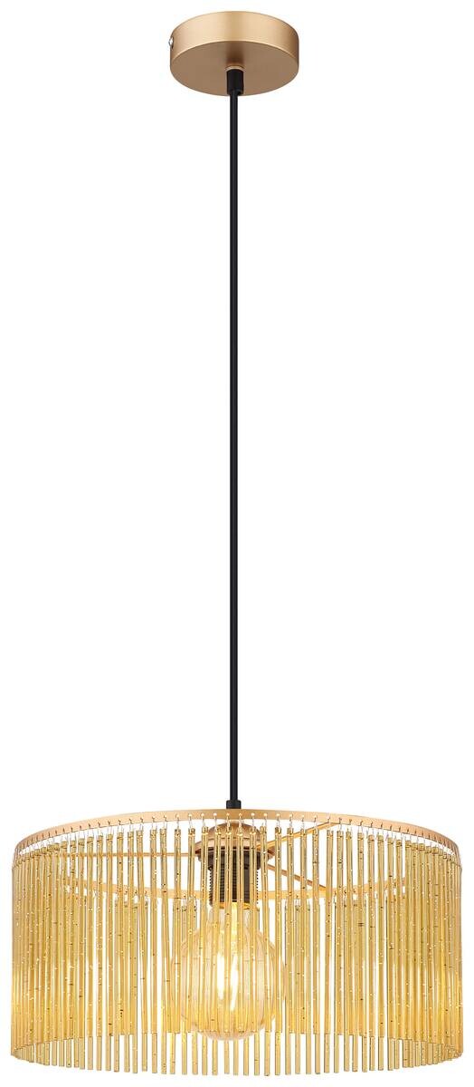 GLOBO Pendelleuchte LEEDS 33080145 schwarz gold amber Kunststoff Metall H/D: ca. 135x35 cm E27 1 Brennstellen