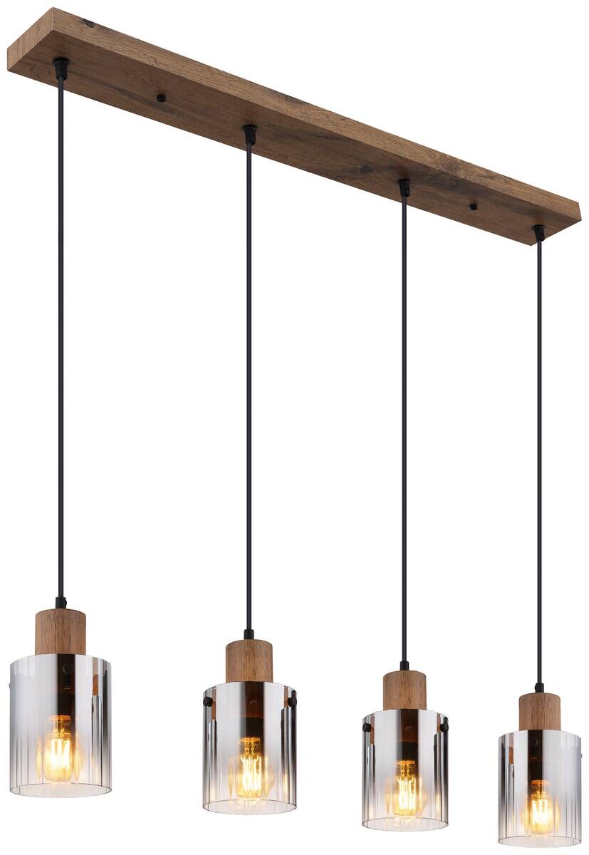 GLOBO Pendelleuchte UNDERWOOD 15915-4H dunkelbraun klar Rauch MDF Kunststoff Glas B/H/L: ca. 105x120x12 cm E27 4 Brennstellen