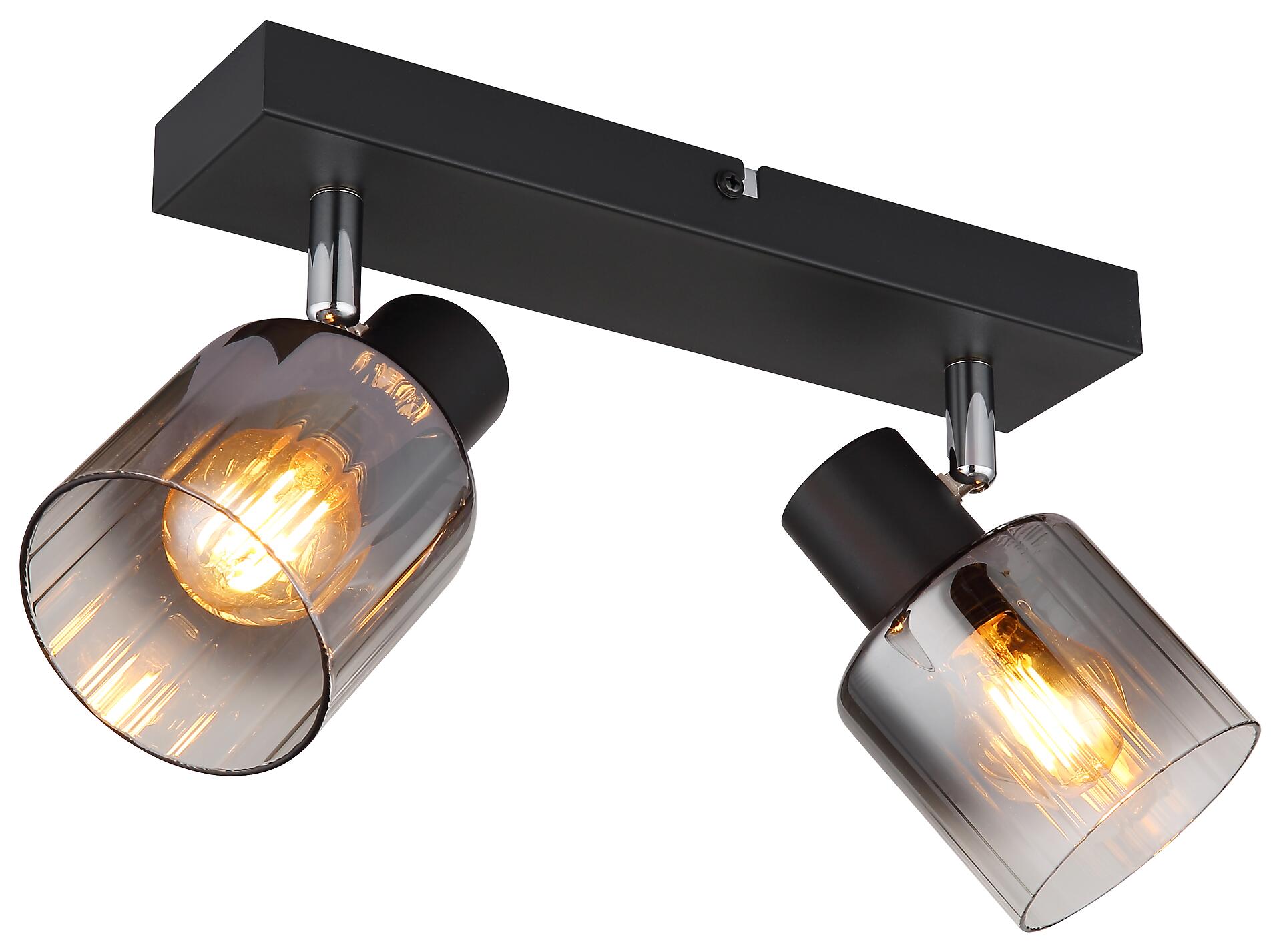 GLOBO Spot Jack Rauch klar schwarz Metall Glas B/H/L: ca. 26x13,5x8 cm E14 2 Brennstellen