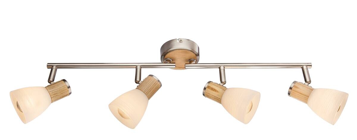 Dieser vierflammige Strahler, der Deckenlampenserie Gylfi, ist mit vier E14 Fassungen, für je max. 40W ausgestattet und ermöglicht Ihnen, ein beliebiges Leuchtmittel zu nutzen. Aufgrund ihrer Stromersparnis und Langlebigkeit, empfehlen wir LED-Lampen. Die Material- bzw. Farbkombination aus Holz und Nickel Matt, macht diesen Deckenstrahler zum Blickfang in Ihrem Wohnbereich. Die vier verstellbaren Spots, montiert auf zwei beweglichen Armen, bringen Licht in die dunkelsten Ecken. Mit Wand- und Deckenlampen der gleichen Modellserie, können Sie das Bild in Ihrem Wohnbereich komplettieren.
