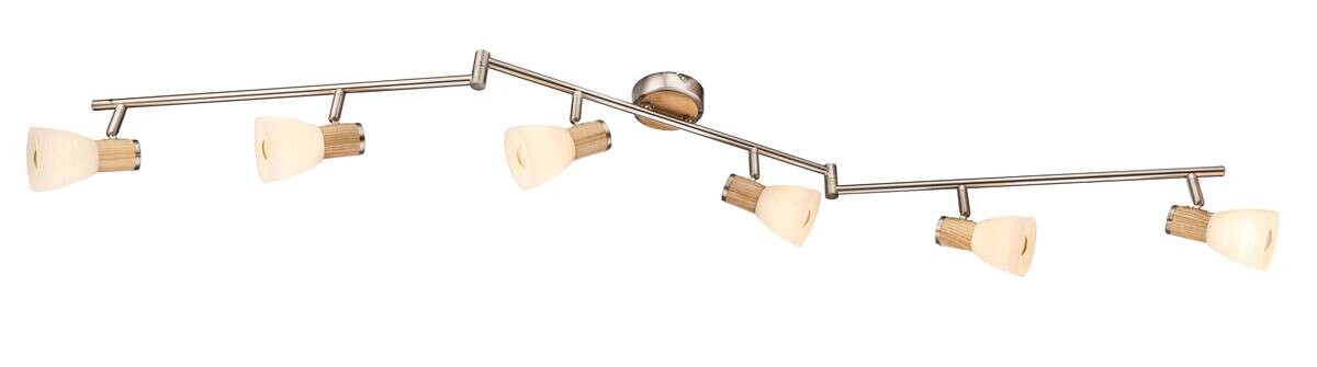 Der sechsflammige Strahler, der Deckenlampenserie Gylfi, ist mit sechs E14 Fassungen für je max. 40W ausgestattet und ermöglicht Ihnen, ein beliebiges Leuchtmittel zu nutzen. Aufgrund ihrer Stromersparnis und Langlebigkeit empfehlen wir LED-Lampen. Die Material- bzw. Farbkombination Holz/Nickel Matt macht diesen Deckenstrahler zum Blickfang in Ihrem Wohnbereich. Die sechs verstellbaren Spots, auf den zum Teil beweglichen Schienen, bringen Licht in die dunkelsten Ecken. Mit weiteren Modellen dieser Produktserie können Sie das Bild in Ihrem Wohnbereich komplettieren.