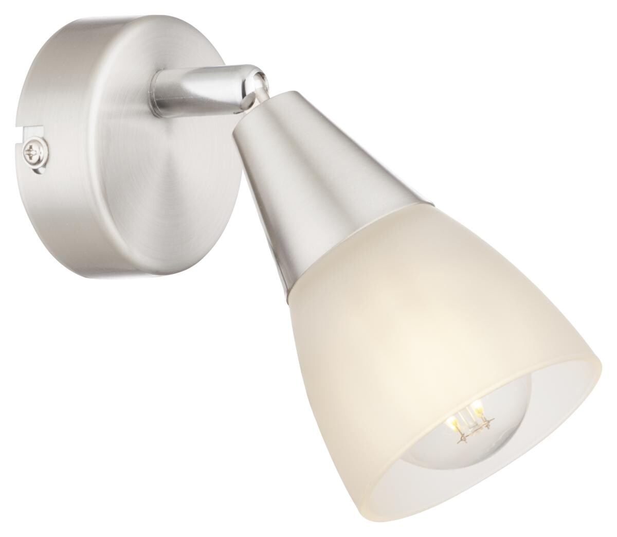 Der 1-flammige Spot, in nickel matt, hat einen weiß satinierten Glasschirm. Der Spot passt, mit seinem schlichten Design, in jeden Raum. Leuchtmittelempfehlung: 1 x E14, max. 40 Watt. Der Spot ist ca. 7 x 13,5 cm groß. Das Leuchtmittel ist nicht im Lieferumfang enthalten. Die Leuchte ist geeignet für Leuchtmittel mit der Energieeffizienzklasse A++ bis E.