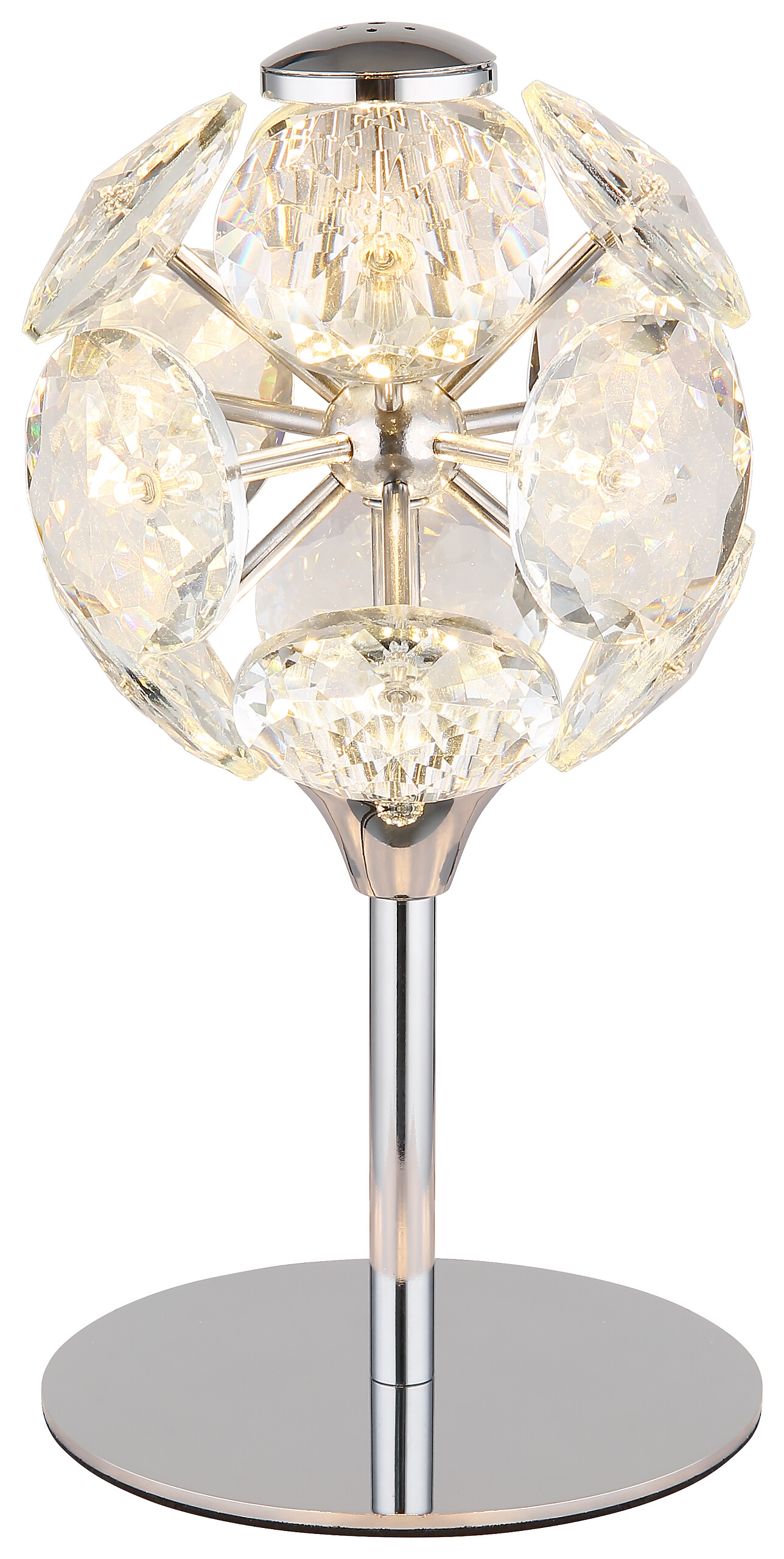 Die Tischleuchte VIRINA vereint elegantes Design mit funktionaler Beleuchtung. Der runde Korpus aus verchromtem Metall und der Schirm aus klaren K9-Kristallen sorgen für eine luxuriöse Optik, die jedes Zuhause bereichert. Mit einem Durchmesser von 150 mm ist die Leuchte kompakt und eignet sich perfekt für kleinere Tische, Sideboards oder Nachttische. Die K9-Kristalle fangen das Licht ein und erzeugen ein wunderschönes Funkeln, das eine gemütliche Atmosphäre schafft. Mit einem Lumen Output von 600 Lumen und einer warmweißen Farbtemperatur von 3000 K sorgt die Leuchte für eine angenehme, gleichmäßige Beleuchtung. Die integrierte LED-Technologie ist energieeffizient und langlebig. Ein praktischer Wippschalter am Kabel ermöglicht eine einfache Bedienung. Die VIRINA Tischleuchte ist nicht nur funktional, sondern auch ein stilvolles Designelement, das Ihrem Raum eine besondere Note verleiht.