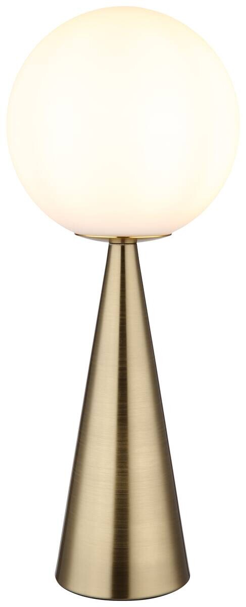 Die elegante Kegel-Tischleuchte besticht durch ihr modernes Design und hochwertige Materialien. Der Kegelkorpus aus mattem, messingfarbenem Metall verleiht der Leuchte einen edlen Look. Die opalweiße Glaskugel als Schirm sorgt für eine sanfte und blendfreie Beleuchtung. Mit einem Durchmesser von ca. 20 cm und einer Leistung von 40 Watt bietet die Tischleuchte ausreichend Helligkeit für verschiedene Anwendungsbereiche. Die E27 Fassung ermöglicht die Nutzung verschiedener Leuchtmittel und eine individuelle Lichtgestaltung. Ein praktischer Kippschalter am Kabel erleichtert die Bedienung der Leuchte. Diese Tischleuchte eignet sich perfekt als dekoratives Element und Lichtquelle in Wohnzimmer, Schlafzimmer oder Arbeitszimmer. Setzen Sie mit dieser Kegel-Tischleuchte stilvolle Akzente und schaffen Sie eine angenehme Atmosphäre in Ihrem Zuhause.