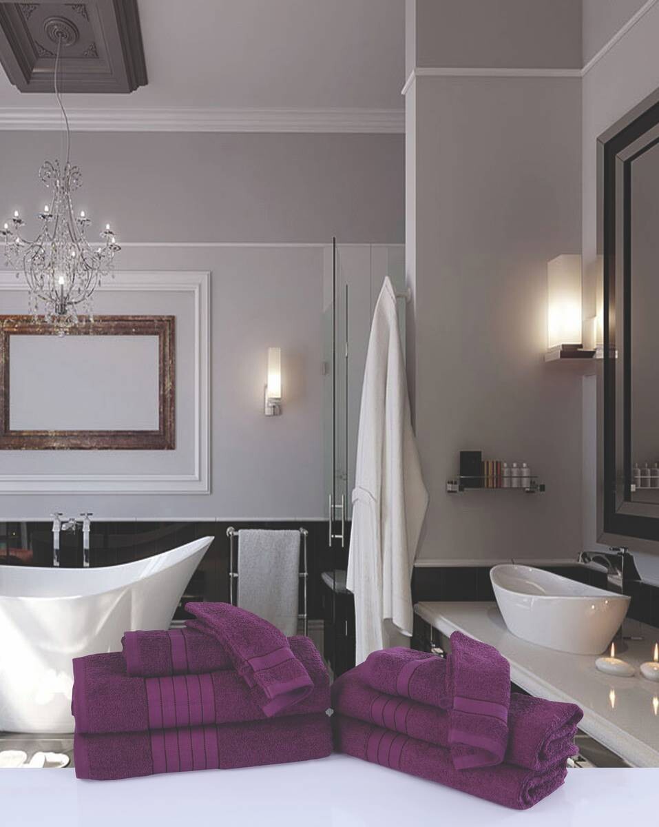Hochwertiges 8-teiliges Frottierset aus 100 % Baumwolle (500gr/m²). Die Artikel zeichnen sich durch gute Wasseraufnahme und schnelles Trocknen aus, sind hautsympathisch und farbbrillant.