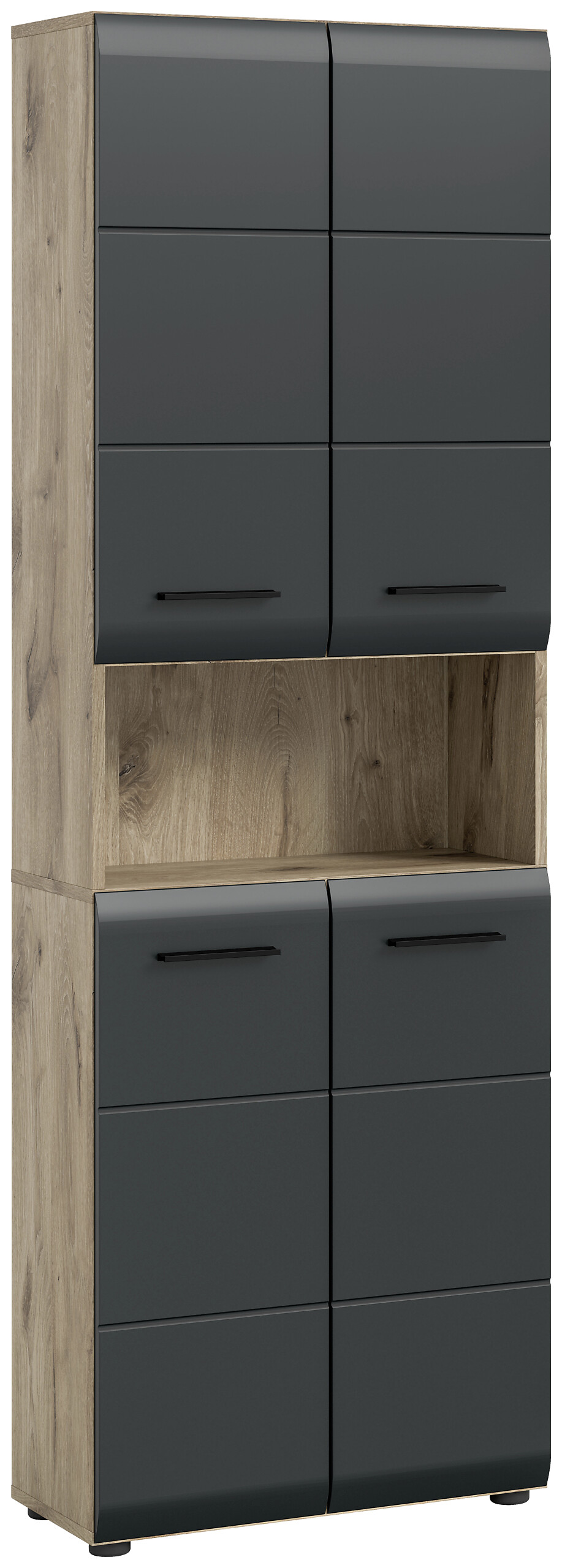 Hochschrank breit (B/H/T: 60x185x30 cm) in schwarz matt und Nox Oak Nachbildung