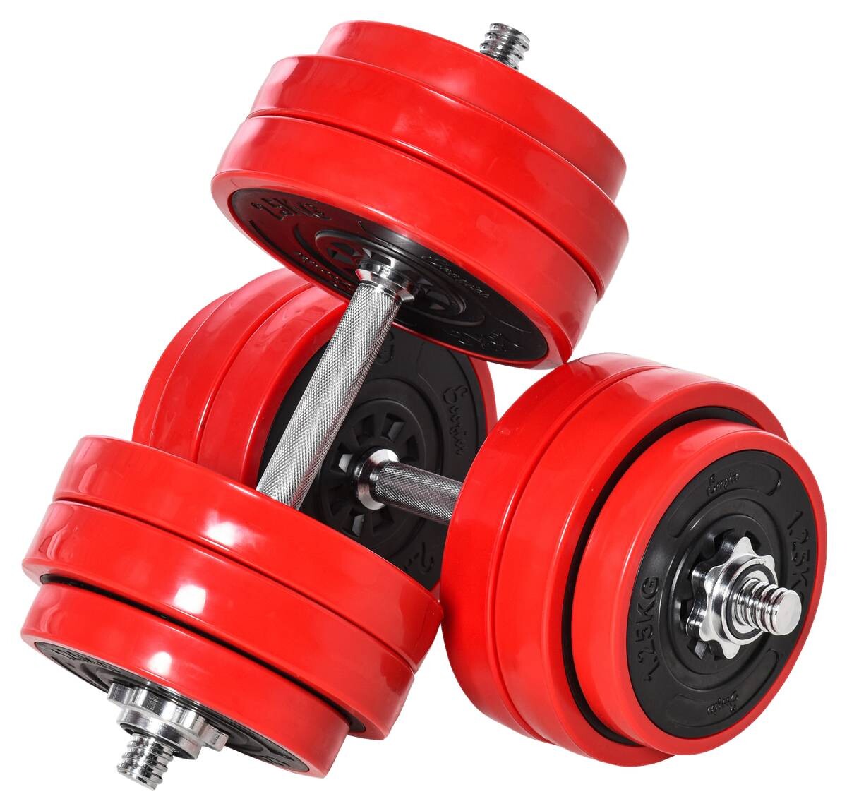 Dieses 2-IN-1 Hantel-Set von HOMCOM kann als Kurzhantel-Set oder als Langhantel-Set verwendet werden. Mit diesem Hantel-Set können sie schnell und effektiv Armmuskeln, Bizeps, Trizeps und die Rumpfmuskulatur stärken. Das Training mit diesem Hantel-Set kann ihre Ausdauer und ihr Cardio-System verbessern. Die Hantel bestehen aus Eisensand und Polypropylen. Das Gewicht und das Trainingslevel kann nach ihren individuellen Bedürfnissen angepasst werden.