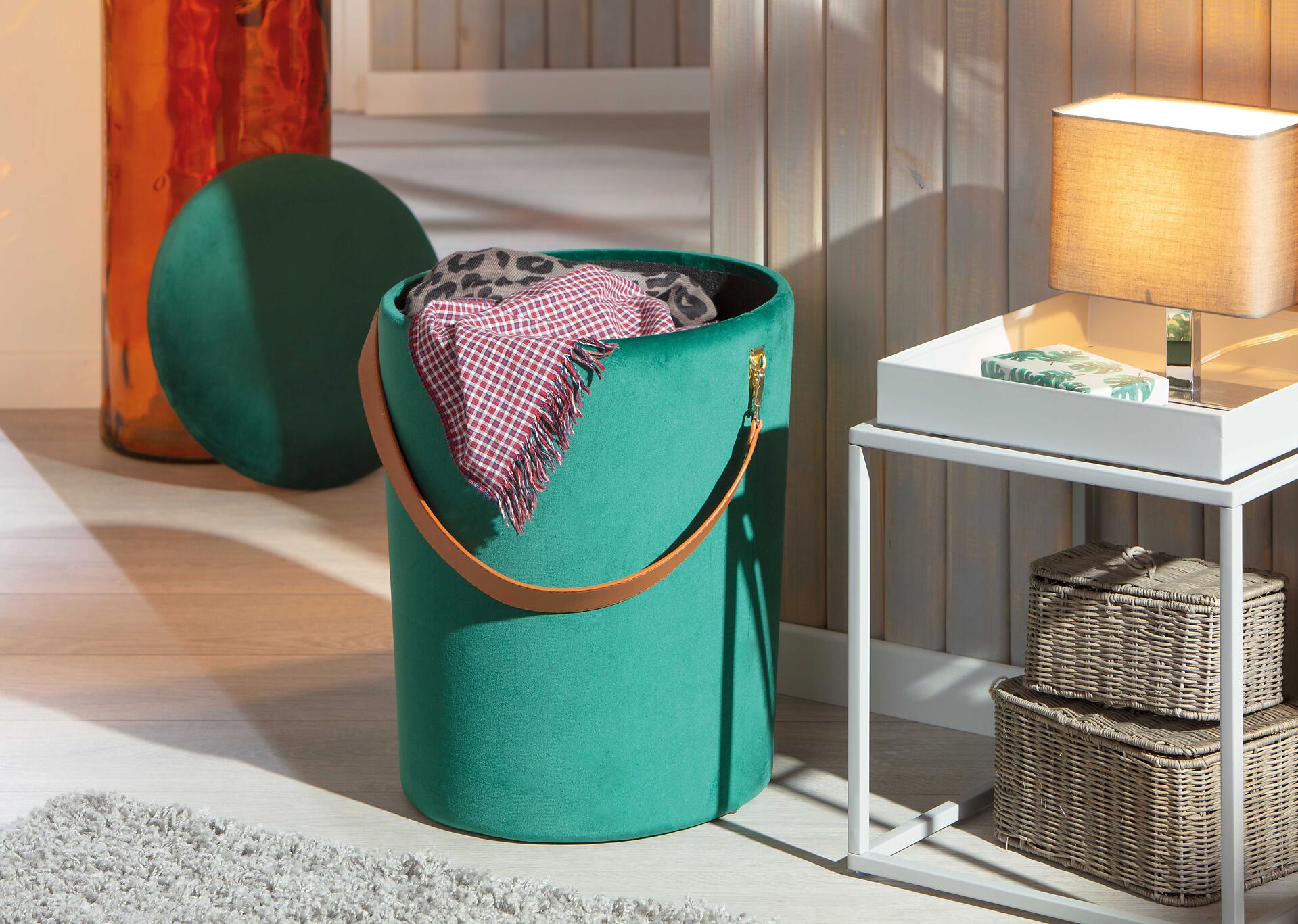 Inter Link Hocker Papua grün MDF Samtoptik B/H/T: ca. 35x45x35 cm