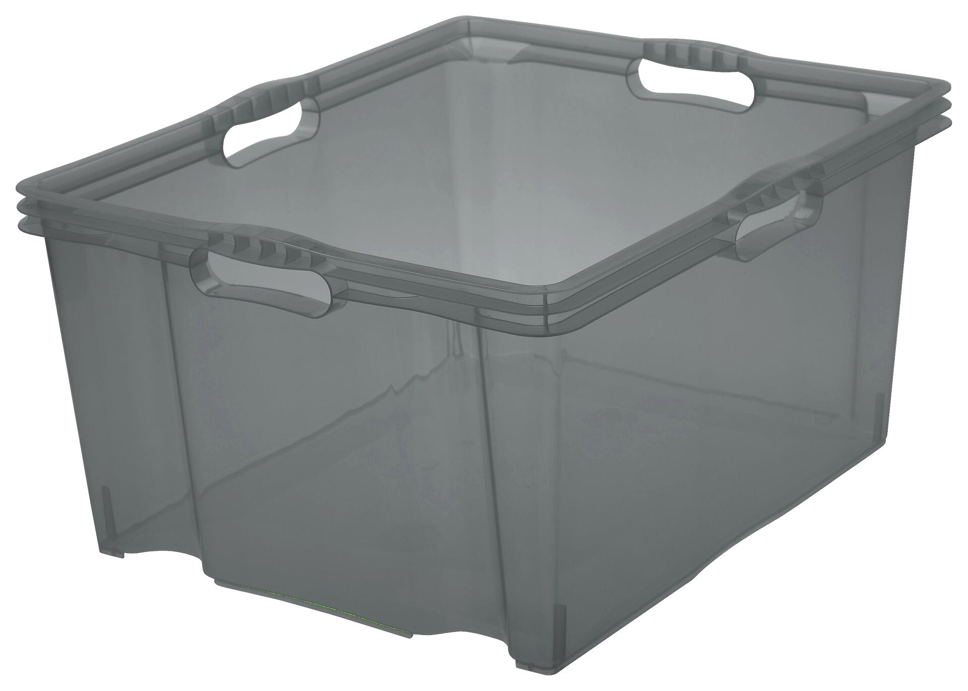 Multibox aus Kunststoff in der Größe XXL, ca. 52 x 43 x 26 cm. Die Box ist crystal grey und ohne Deckel.