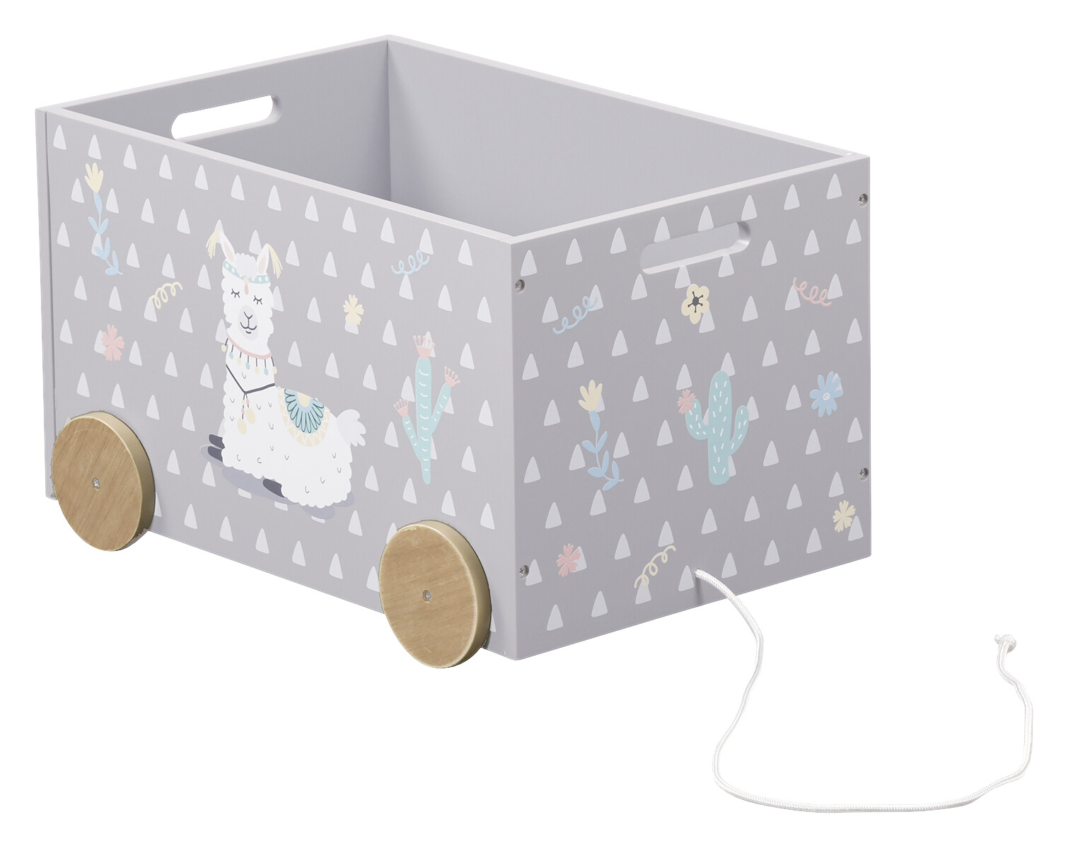 Überall liegt Spielzeug herum? Nicht mit unserer Spielzeugkiste. Auf spielerische Art und Weise kann Ihr Kind nicht nur sein Spielzeug vom Kinderzimmer in´s Wohnzimmer transportieren, sondern lernt gleichzeitig auch, wie viel Spaß das Aufräumen machen kann. Vier robuste Holzrollen sorgen für leichtes Verschieben und schützen den Boden vor Kratzern. Außerdem kann Ihr Kind seine Spielsachen mit der integrierten Schnur ganz leicht hinter sich herziehen. Großzügige Abmessungen bieten Platz für Bücher, Kuscheltiere, Autos, Puppen und vieles mehr. Darüber hinaus fertigen wir diesen Artikel aus schadstofffreien Faserplatten.