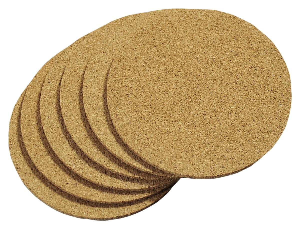 Untersetzer-Set 6 Stück aus Kork, ø ca. 10 cm.