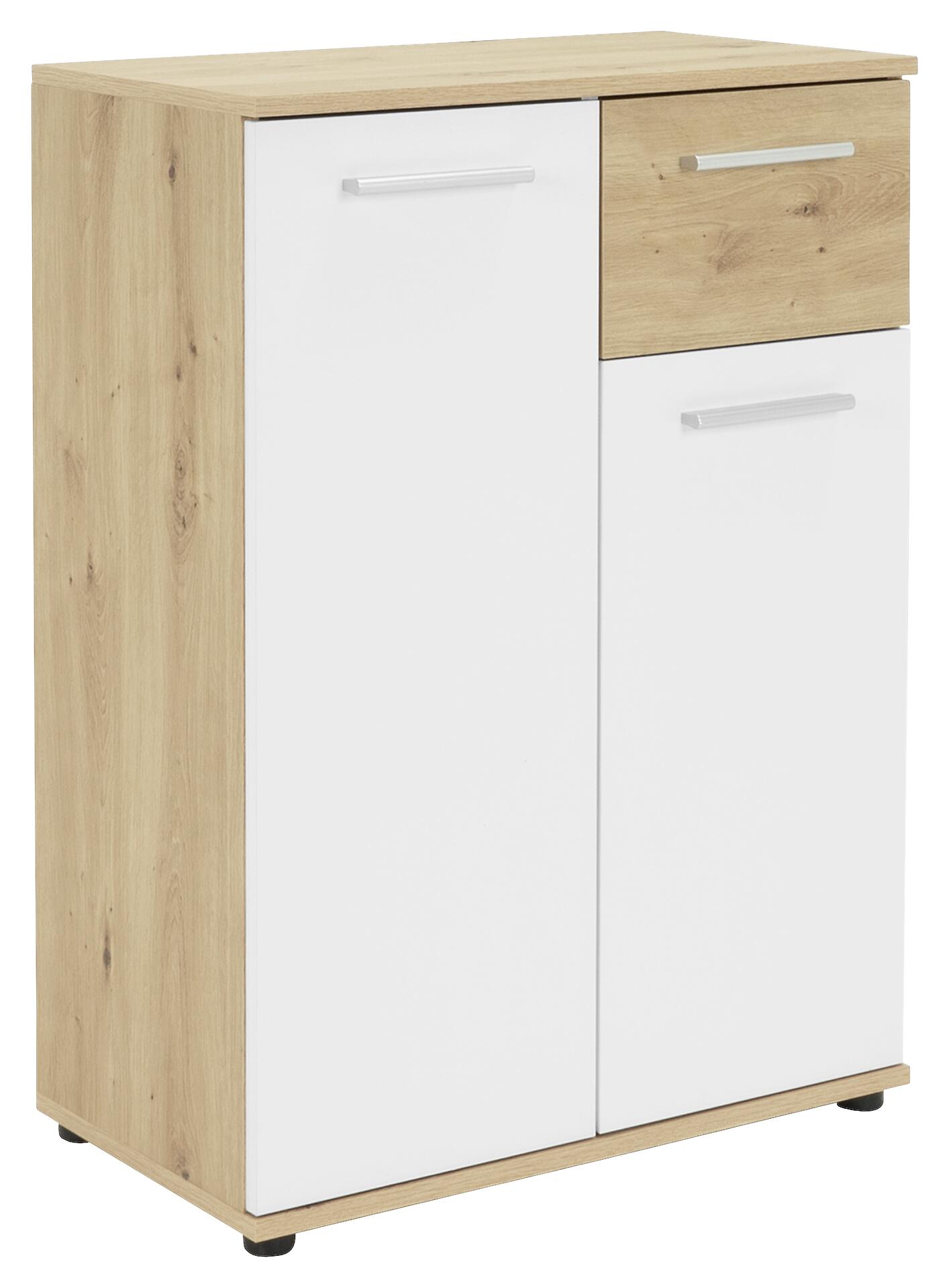 Unsere schöne Kommode Jacky aus Artisan-Eiche-Nachbildung in Verbindung mit weißen Fronten gibt Ihrem Zuhause ein gemütliches Flair.