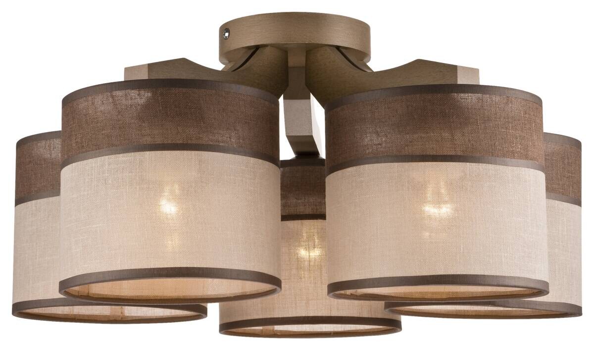 Lamkur Deckenleuchte Andrea natur Holz Stahl Stoff H/L: ca. 23x43 cm E27 5 Brennstellen