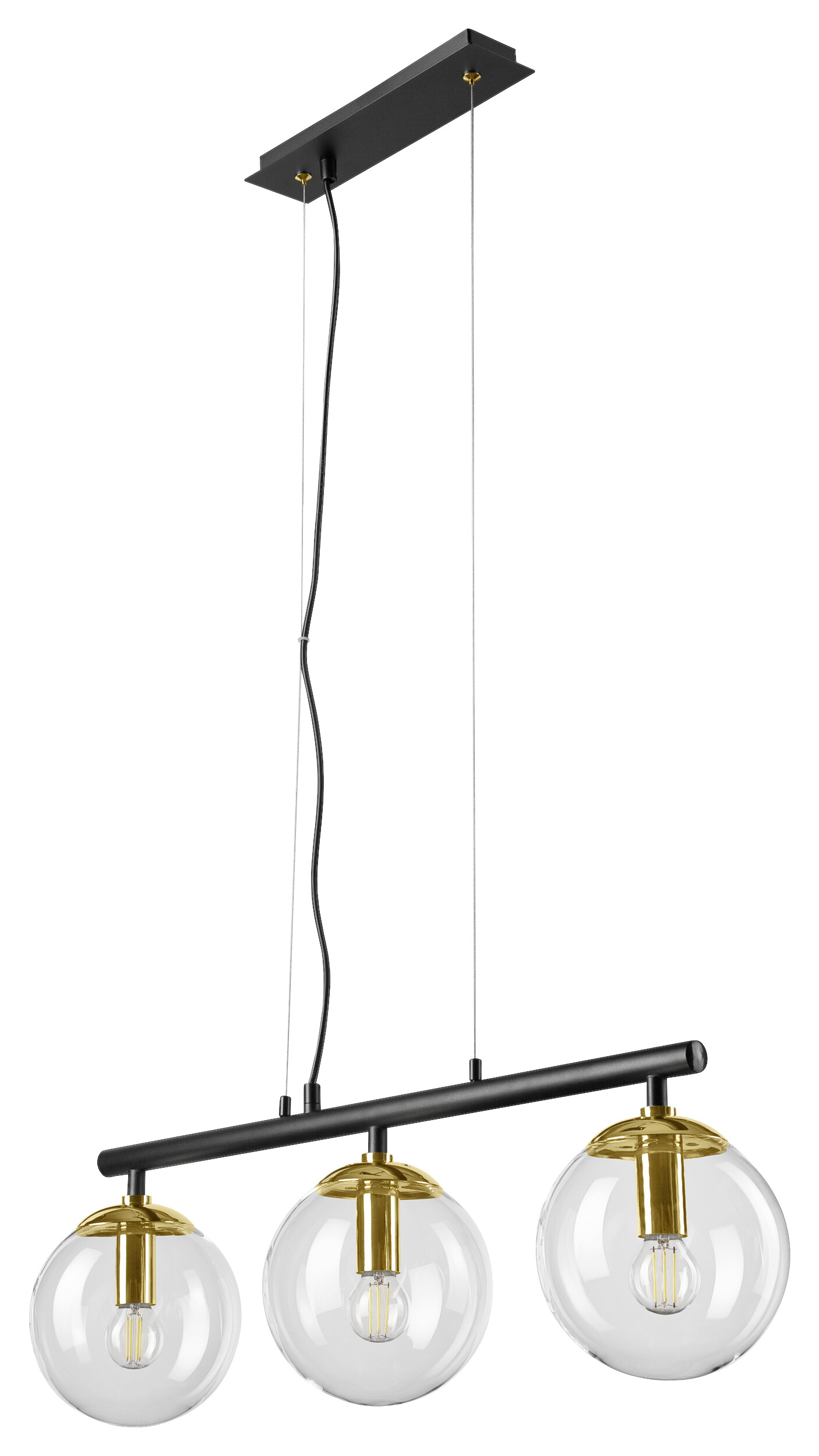Die Pendelleuchte ELOISE vereint edles Stahl- und Glasdesign mit einer glamourösen goldenen Oberfläche. Ein elegantes Highlight für stilvolle Räume.