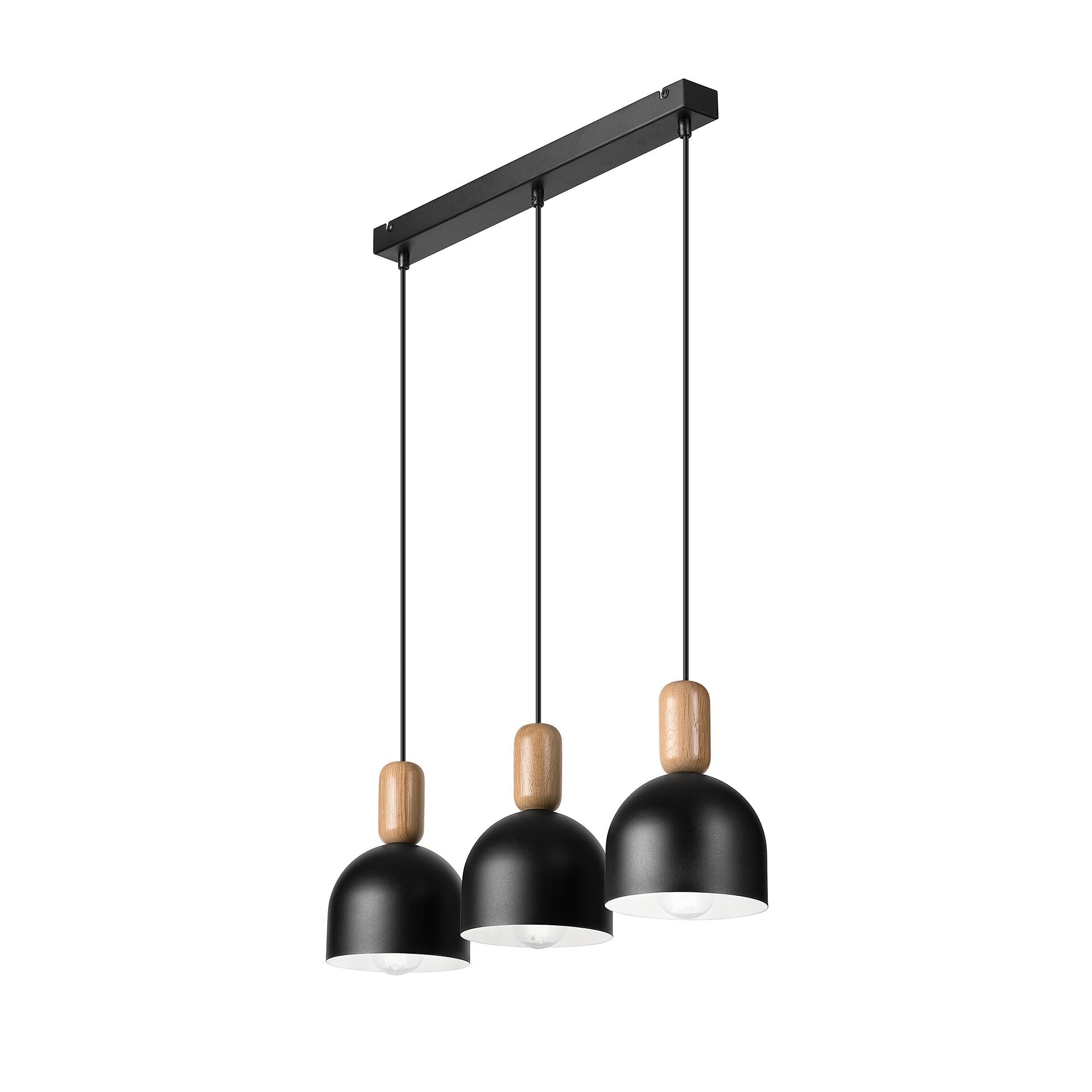 Lamkur Hängeleuchte schwarz Eiche Stahl Holz B/H/L: ca. 15,5x85x59 cm E27 3 Brennstellen