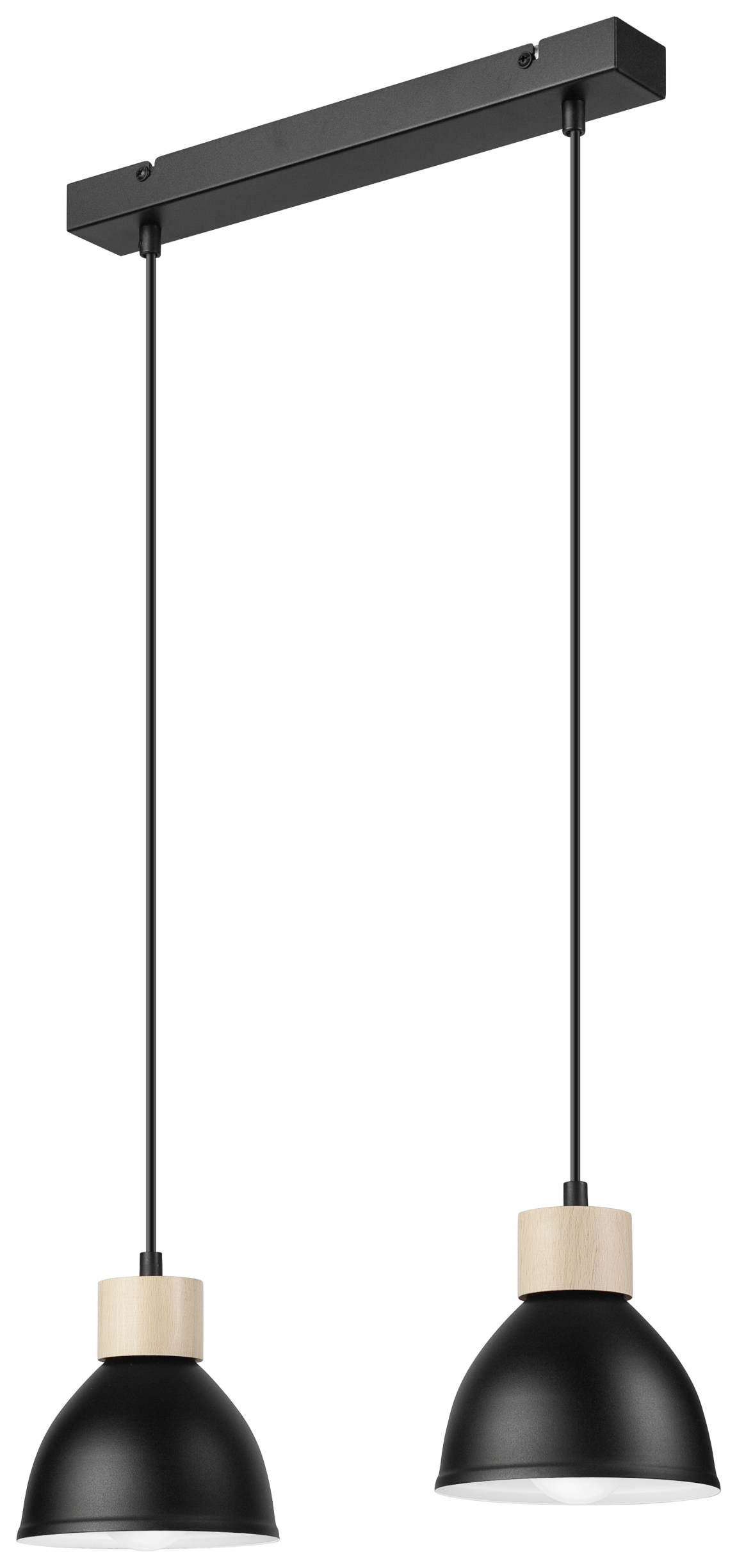 Lamkur Pendelleuchte schwarz Stahl Holz B/H/L: ca. 13x82x48 cm E27 2 Brennstellen