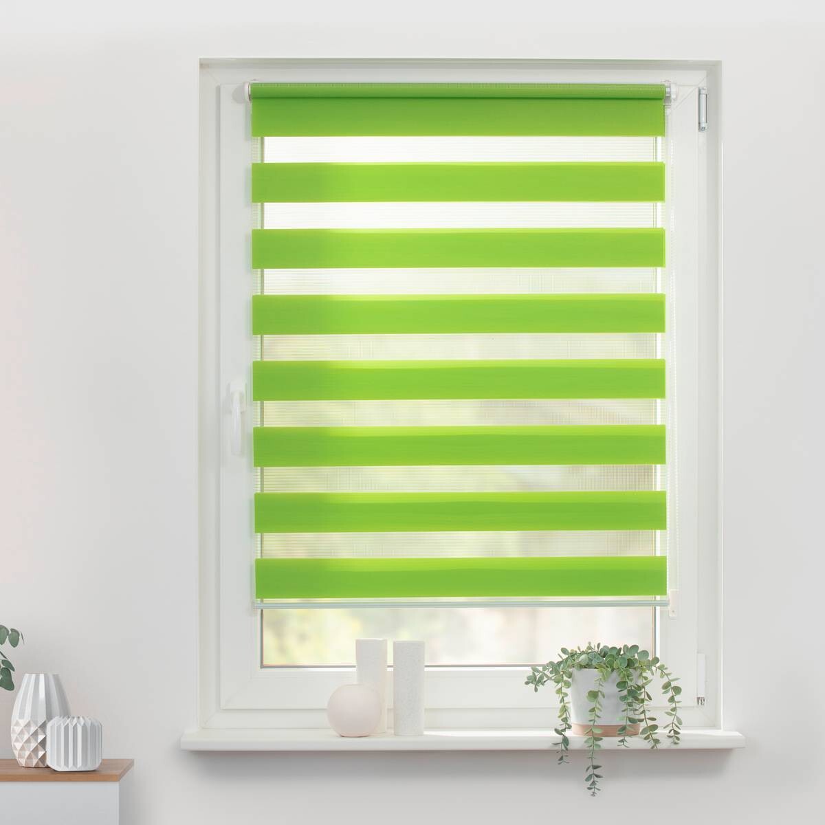 - Doppelfunktion: Weil das Duo-Rollo wie eine Jalousie einstellbar ist, bleibt der Blick nach draußen jederzeit erhalten – und das bei gleichzeitigem Sicht- und Lichtschutz!