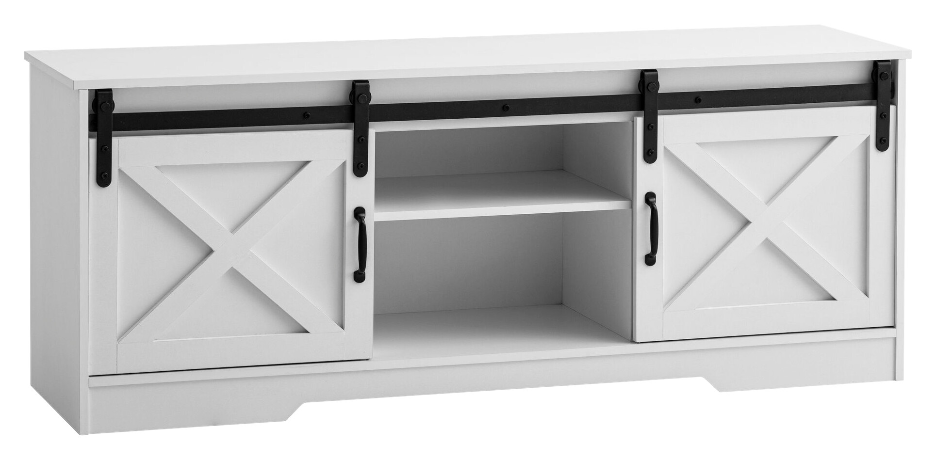 LANDHAUS TRIFFT MODERNE - Unser TV-Lowboard verzaubert mit authentischer Optik und eleganten Linien. Die markanten Barn-Door-Schiebetüren verleihen rustikalen Charme.