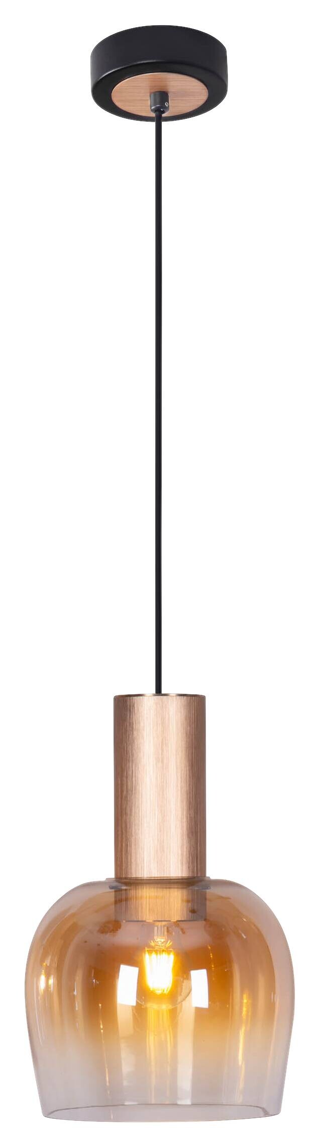 Diese Pendelleuchte aus unserer FUNDA-Kollektion wird Sie begeistern! Mit Pendelleuchten erhalten Sie eine direkte und zielgerichtete Beleuchtung, die optimal für die Beleuchtung von Esstischen, Kücheninseln, Arbeitsbereichen oder anderen Bereichen geeignet ist, die eine konzentrierte Lichtquelle benötigen. Sie akzentuieren bestimmte Zonen und schaffen eine klare Lichtquelle für alltägliche Aufgaben. Eine elegante Optik und eine abgerundete Gestalt machen diese Leuchte im Retro Style zu einem Must-Have für alle, die eine stimmige Einrichtung lieben. Die Leuchte aus Metall und Glas in messing ist ein Blickfang in jedem Raum.. Das gebürstete Gestell und der klare, transparente Schirm verschmelzen zu einem harmonischen Gesamtbild. Die Pendelleuchte misst 23,5 cm im Durchmesser und 150 cm in der Höhe. Zwischen 42 und 150 cm kann die Länge des Pendels nach Belieben eingestellt werden. Diese Pendelleuchte ist die perfekte Lösung für Ihre Innenraumbeleuchtung. Sie können das Leuchtmittel selber wechseln, das ist nicht nur praktisch, sondern spart auch Kosten. Diese Leuchte entspricht der Klasse 1. Für den Netzbetrieb dieses Geräts wird eine Netzspannung von 220-240V ~ 50Hz benötigt. Eine Gesamtleistung von 40 Watt sorgt für ein helles und energieeffizientes Leuchten im Wohnbereich. Erzeugen Sie mit unserer hochwertigen Pendelleuchte das passende Ambiente und verleihen Sie Ihrem Zuhause ein Gefühl von Komfort und Stil in jedem Raum.
