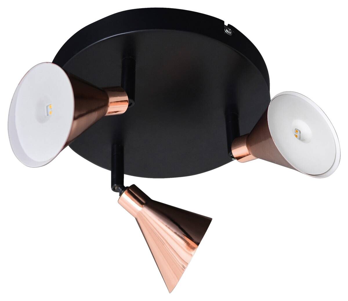 Der 3er LED-Wand- und Deckenspot "Copper" taucht dein Zuhause in warmweißes Licht. Die Spots lassen sich verstellen, so kannst du gezielt das Licht dort hin lenken, wo du es haben möchtest . Kupferfarbene Metall macht die modern gestaltete Leuchte besonders.