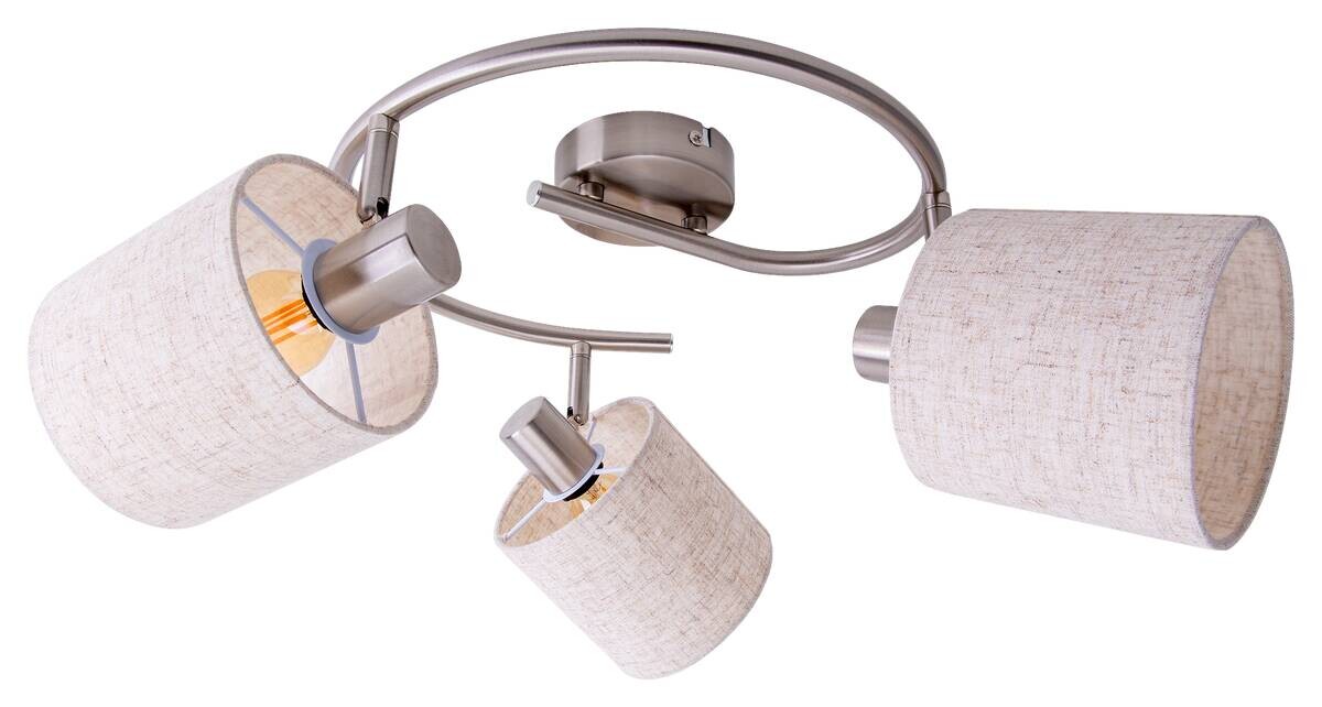 Das 3er Wand-/Deckenrondell "Maron" "punktet sowohl in einem modernen Umfeld, als auch in einem eher klassischen Ambiente. Ob als Pendelleuchte über dem Esstisch, als Wandlampe oder geschwungene Deckenlampe im Wohnbereich oder Flur, mit den verschiedenen Modellvarianten Der Serie "Maron" kannst du jede Wohnsituation optimal beleuchten. Die Materialien sind perfekt aufeinander abgestimmt. Kühler, matter Stahl in der Farbe nickel-sainiert trifft auf schlichten natur-braunen Leinen-Tweed bei den Schirmen.