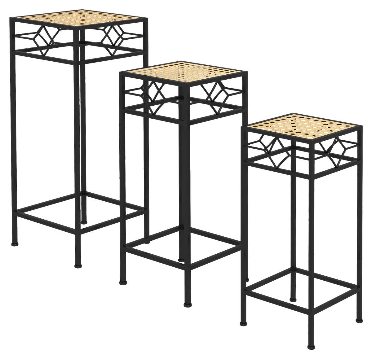- Elegantes Design: Durch die Kombination aus Metall, Rattandekor und schwarzem Rahmen verleihen Sie Ihren Räumen eine stilvolle Note. Heben Sie Ihre Pflanzen hervor, um den Eck-Pflanzenständer zu einem einzigartigen Blickfang zu machen