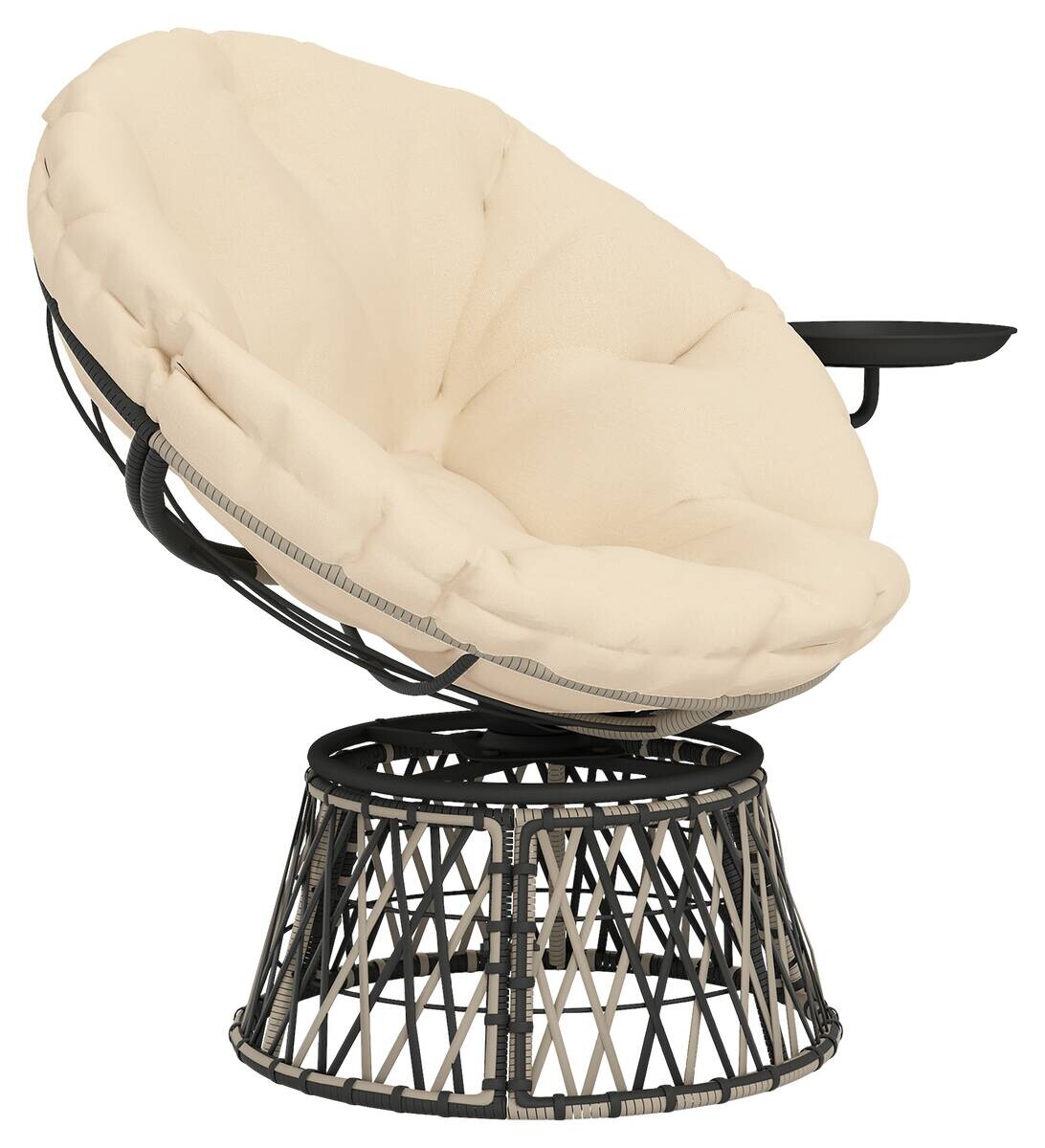 Perfekt für Garten, Veranda oder Balkon, sorgt dieser Rattan-Papasansessel für erstklassigen Komfort. Dank der 360°-Drehfunktion finden Sie leicht eine gute Position zum Sonnen oder um die Blendung zu vermeiden. Lehnen Sie sich tief in das dicke Polster zurück und genießen Sie Entspannung pur mit dem praktischen eingebauten Seitentisch. Dieser aus wetterfesten Materialien hergestellte Rattan-Papasansessel ist ideal für den Außeneinsatz. Wählen Sie Outsunny und genießen Sie Komfort im Freien.