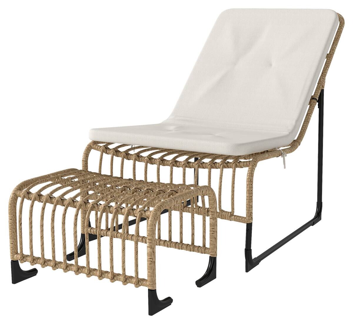 Freizeitset für draußen: Erleben Sie höchsten Komfort mit diesem eleganten Terrassenstuhl-Set, das einen armlosen Lounge-Sessel und einen dazu passenden, mit Rattan geflochtenen Fußhocker umfasst, perfekt zum Relaxen nach einem anstrengenden Tag oder für entspannte Wochenenden in Ihrem Garten.