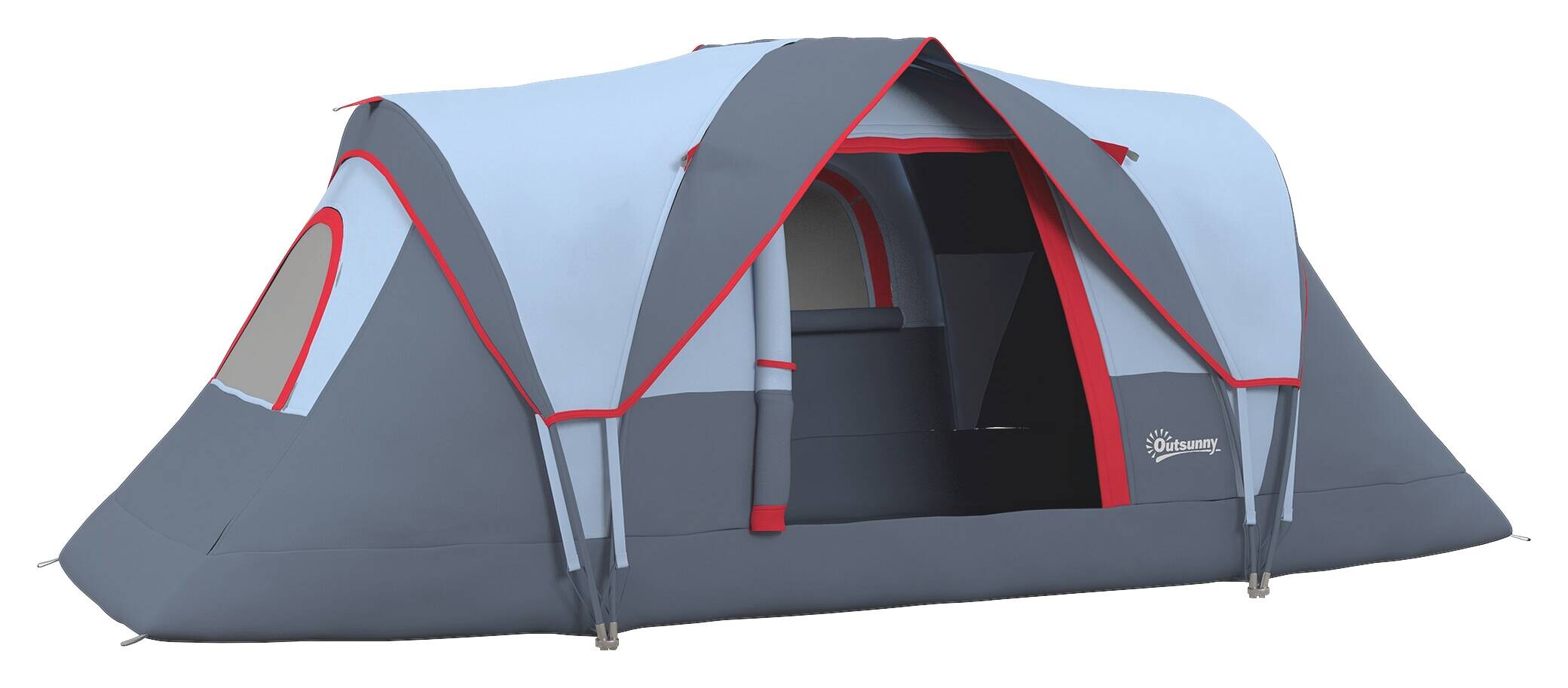 Dieses 5-6 Personen Zelt ist ideal für Campingausflüge, Übernachtungen oder Wanderungen. Das geräumige Zelt bietet genug Platz für Pärchen oder Familien und der Wetterfeste Bezug schützt sie auf Ihrem Trip vor den Elementen und gefährlicher UV-Strahlung. Die hochwertigen Materialien sind rostbeständig und langlebig. Im Lieferumfang enthalten sind Heringe und eine Transporttasche für leichten Transport.