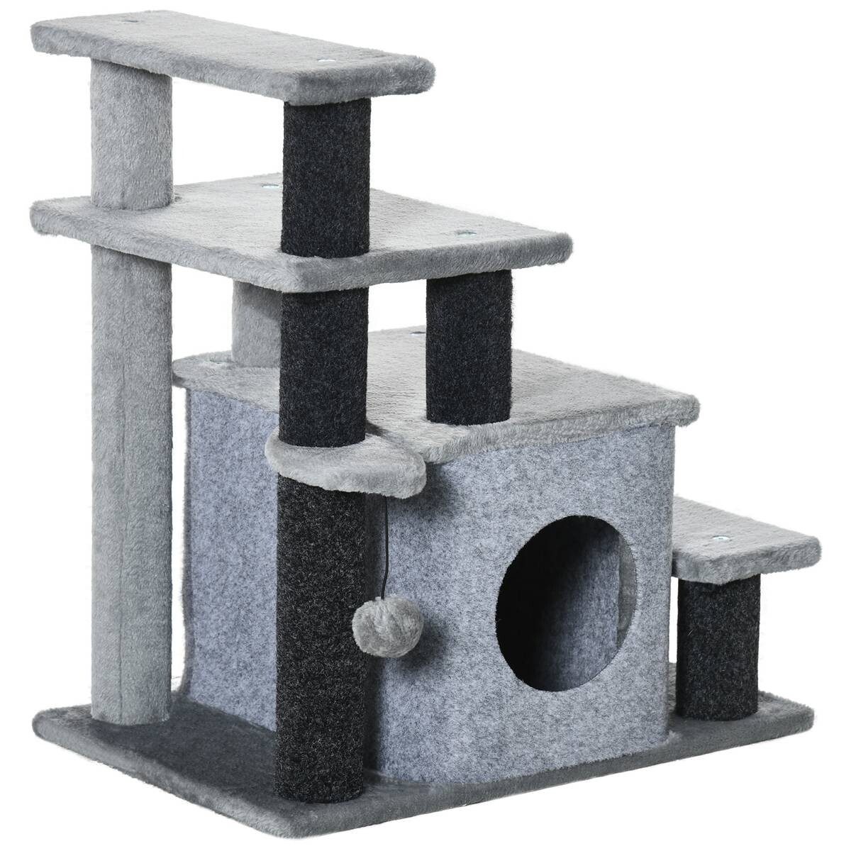 - Kratzbaum und Häuschen: Ihre Katze wird mit Freude die Stufen erklimmen und ihre Umgebung bequem aus ihrem eigenen Häuschen aus beobachten.