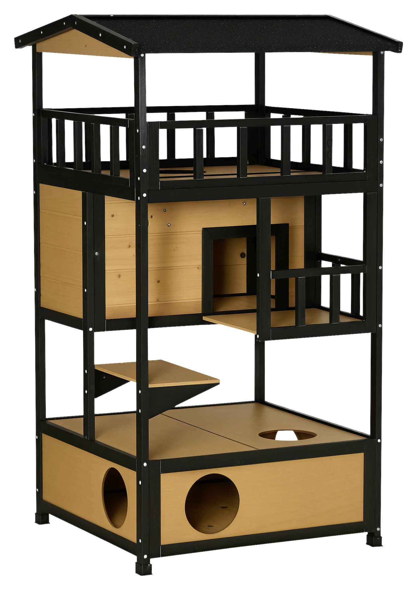 PawHut Katzenhaus schwarz Holz B/H/L: ca. 75x137x75,5 cm
