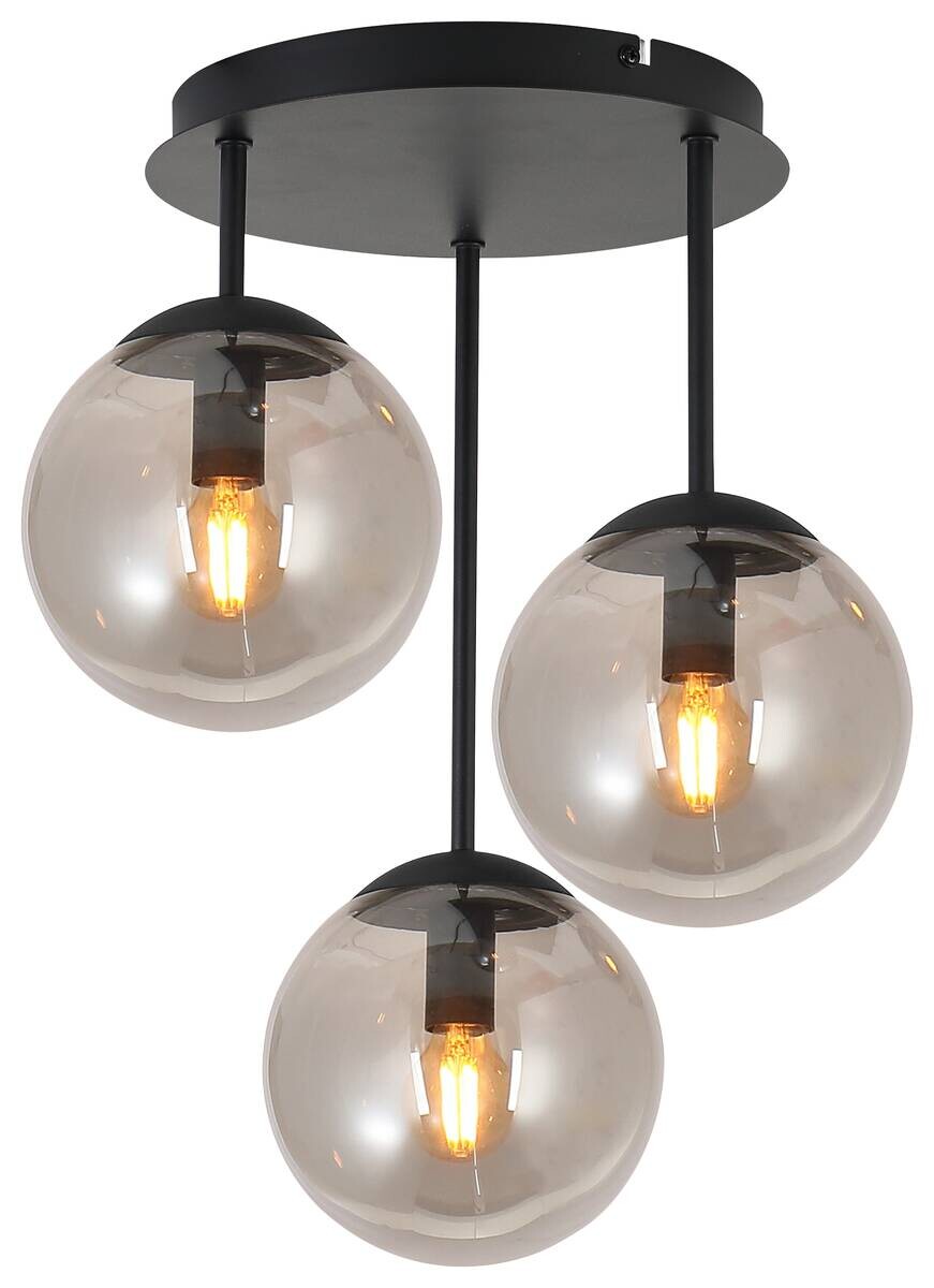 POCOline Deckenleuchte schwarz Rauch Metall Glas H/D: ca. 42x34,5 cm E14 3 Brennstellen