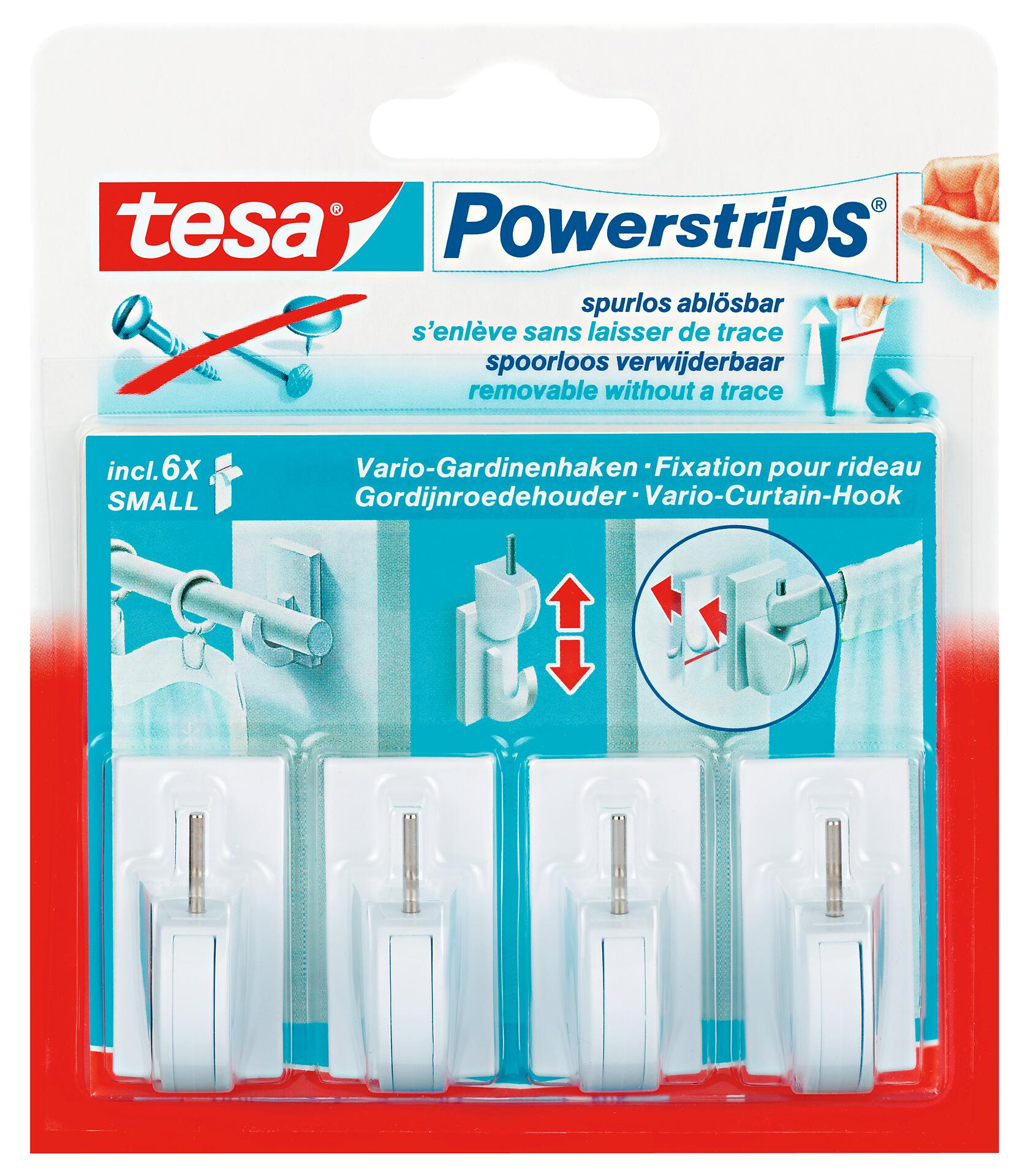 - Gardinenstangenhalter sind mit tesa Powerstrips® Small mehrfach verwendbar