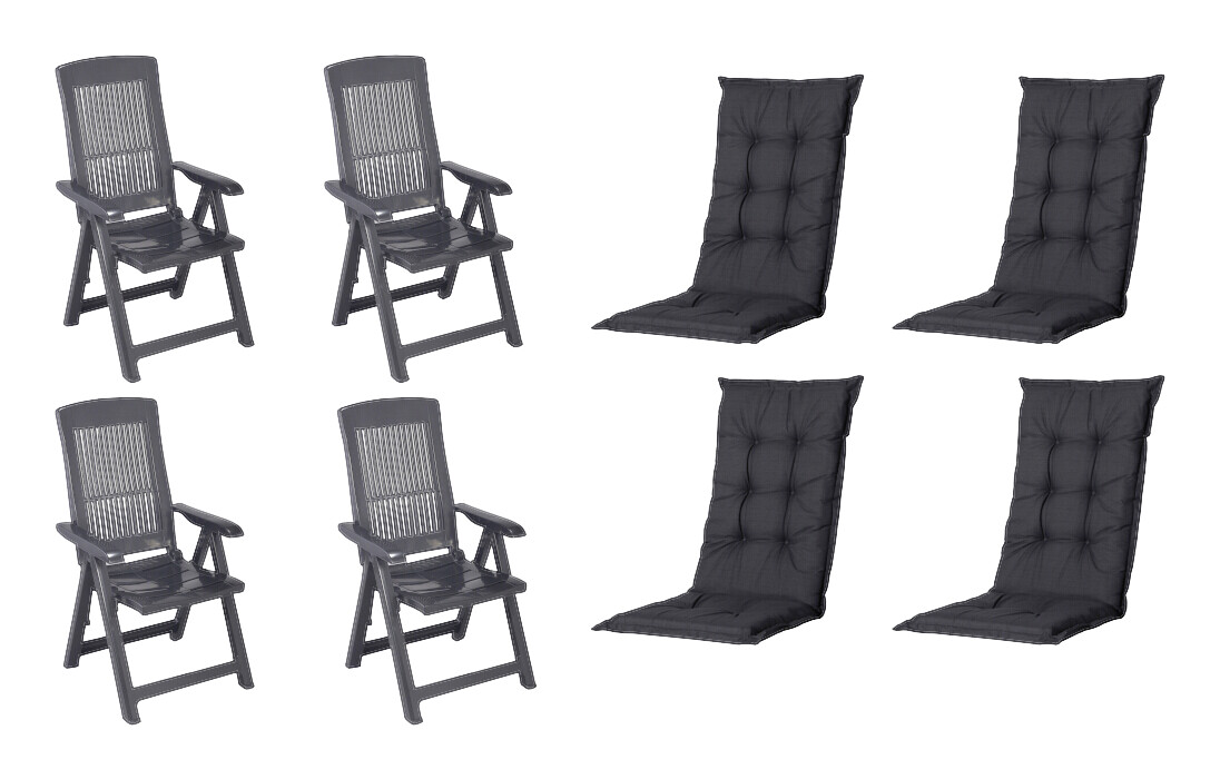 PROGARDEN,MADISON Klappsessel Set + Auflagen Tampa anthrazit Kunststoff B/H/L: ca. 61x109x60 cm