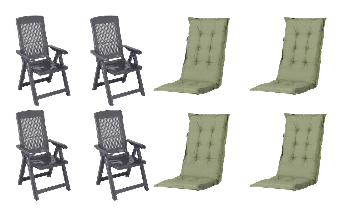 PROGARDEN,MADISON Klappsessel Set + Auflagen Tampa grün Kunststoff B/H/L: ca. 61x109x60 cm