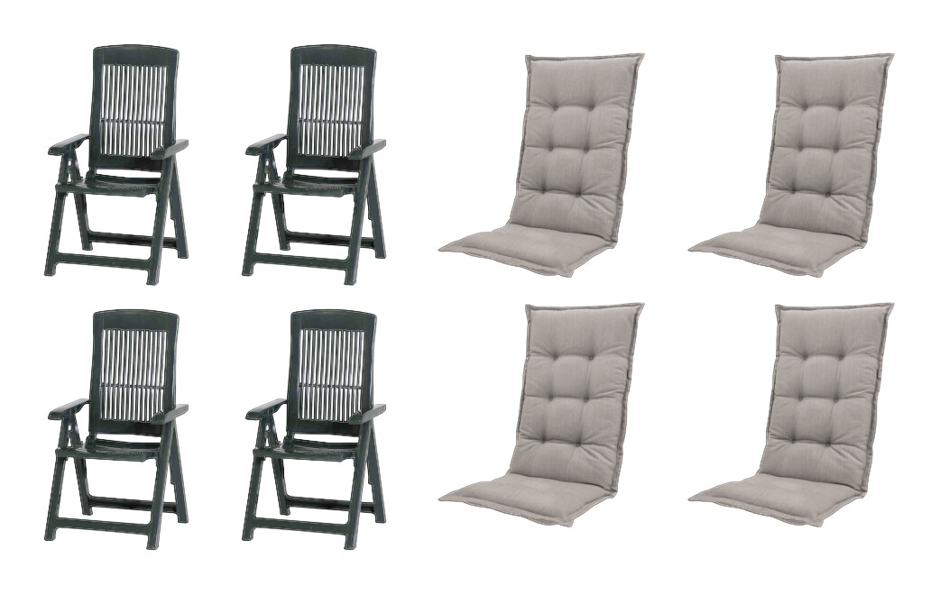 PROGARDEN,MADISON Klappsessel Set + Auflagen Tampa grün Kunststoff B/H/L: ca. 61x109x60 cm