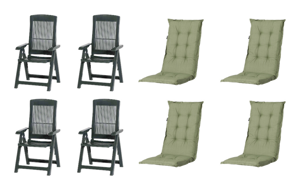 PROGARDEN,MADISON Klappsessel Set + Auflagen Tampa grün Kunststoff B/H/L: ca. 61x109x60 cm