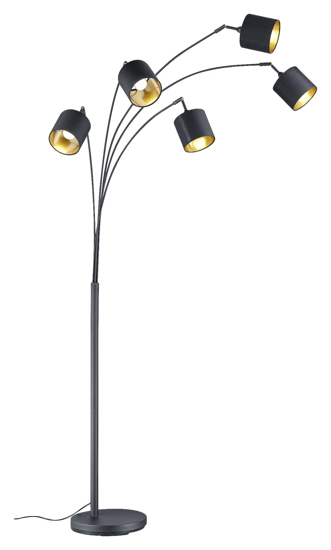 Reality Bogenleuchte Tommy mattschwarz gold Metall Stoff B/H/L: ca. 30x200x72 cm E14 5 Brennstellen