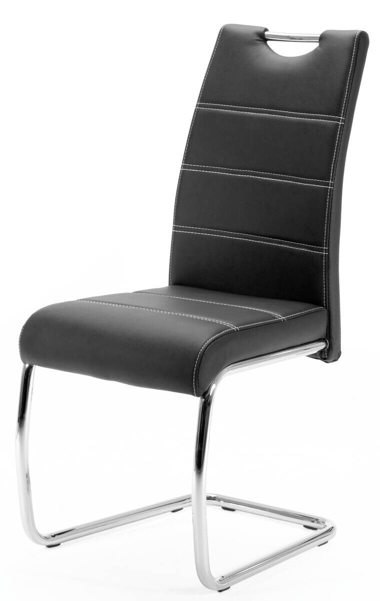 Für eine schlichte aber stilvolle Einrichtung wird der Freischwinger in Schwarz sorgen. Mit dem pflegeleichten Bezug aus hochwertigem Kunstleder wird er Sie in puncto Reinigung überzeugen. Die doppelten Ziernähte im Rücken und Sitz sind sehr edel und schaffen einen scharfen Kontrast zu der Hauptfarbe. Die gut gepolsterte Sitzschale wird von dem robusten Metallgestell aus verchromtem Rundrohr getragen. Weiterhin werden Sie sich an dem Rückenlehnengriff erfreuen, der für Sie das Tragen leichter machen wird.