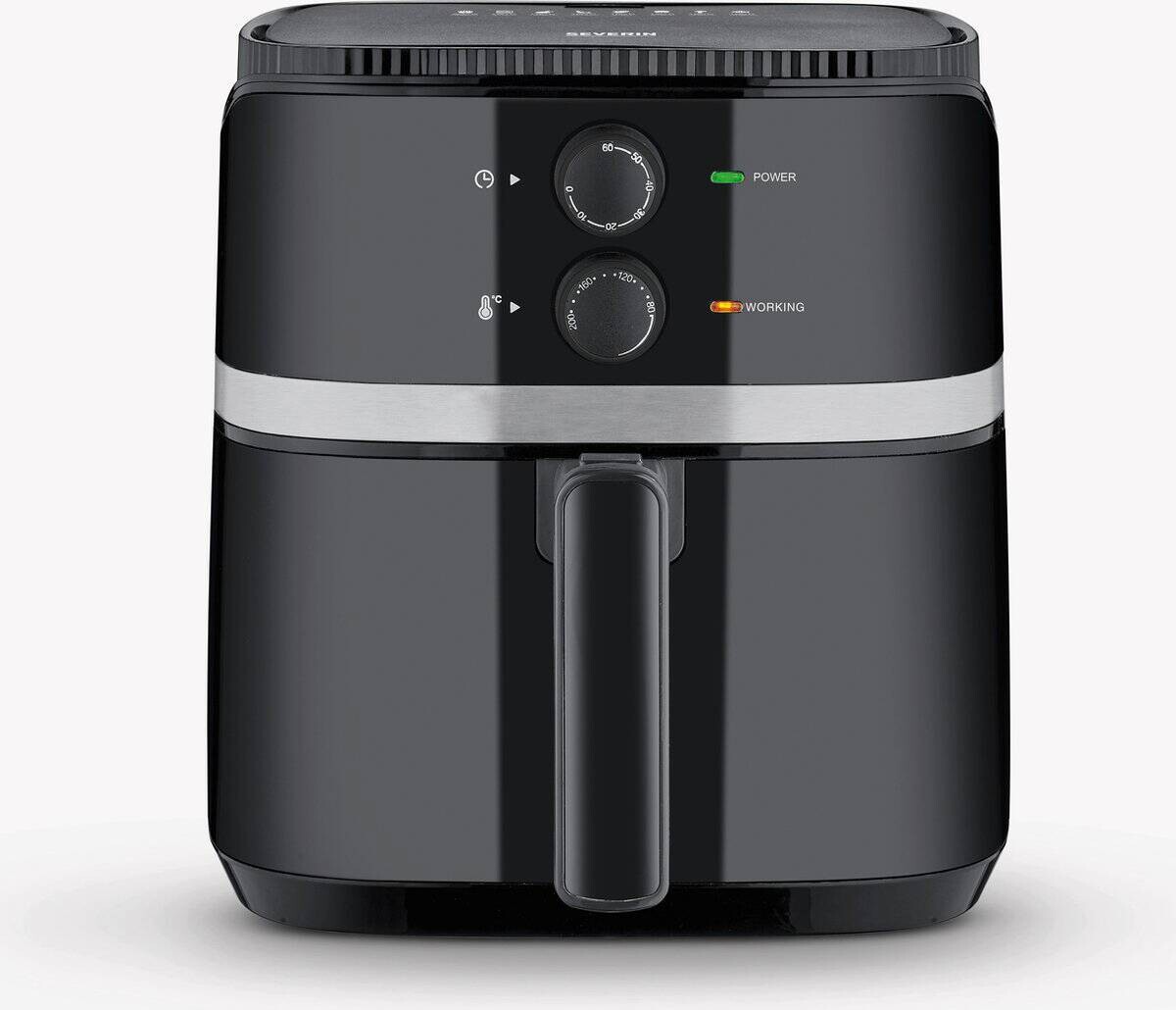 Die Severin Heißluftfritteuse bietet mit 1500 Watt Leistung und einem Fassungsvermögen von ca. 5 Litern ausreichend Platz für die Zubereitung gesunder und knuspriger Speisen mit wenig bis keinem Öl. Das moderne, schwarze Design und die intuitive Bedienung machen sie zum praktischen Küchenhelfer für vielseitige Gerichte.